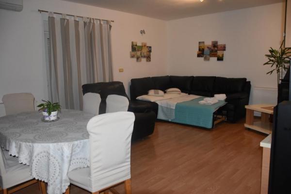 Apartman szállást kínál egy csendes részén Tribunj, zöldövezetben, és olajfaligetek. Az utca egyirányú, és kicsi a forgalom. A lakás légkondicionált, két hálószoba és egy pótágy a nappaliban, teljesen felszerelt konyha (mosogatógép, mikrohullámú sütő, vízforraló, kávéfőző, turmixgép ..) 2 fürdőszoba (zuhanyzó és kád) mosógép az áruk, a szárítás, védelem a szúnyogok minden szobában, TV a hálószobában és a nappaliban, ingyenes Wi-Fi, műholdas TV-vel. A lakás klimatizált. Van vasalódeszka és vasaló. A lakáshoz tartozik két tágas terasz a pihenés, grill és 2 parkolóhely.