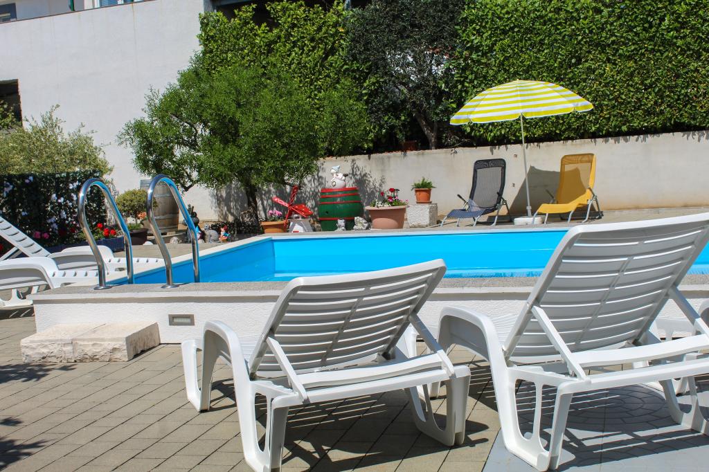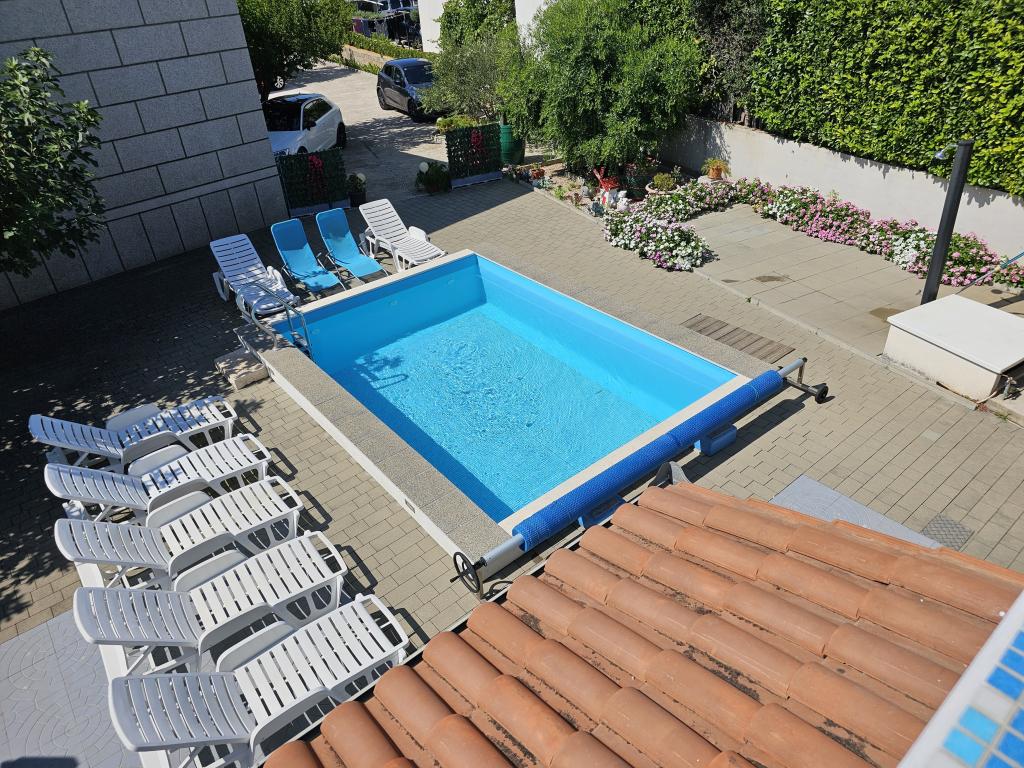 A medence minden vendég számára rendelkezésre áll. A1-es APARTMAN (légkondicionáló) - a földszinten található, konyhából, két fürdőszobából, két négyágyas hálószobából, nappaliból, műholdas TV-ből, WI-FI-ből, egy kis erkélyből terasszal és parkolóhelyből áll. A2-es APARTMAN (légkondicionáló) - az első emeleten található, konyhából, fürdőszobából, egy hálószobából kis erkéllyel, nappaliból egy kétszemélyes kanapéággyal, műholdas TV-ből, WI-FI-ből, egy nagy teraszból és parkolóhelyből áll. A3-as APARTMAN - az első emeleten található, konyhából, fürdőszobából, egy hálószobából kis erkéllyel, nappaliból egy kétszemélyes kanapéággyal, műholdas TV-ből, WI-FI-ből, egy nagy teraszból és parkolóhelyből áll.