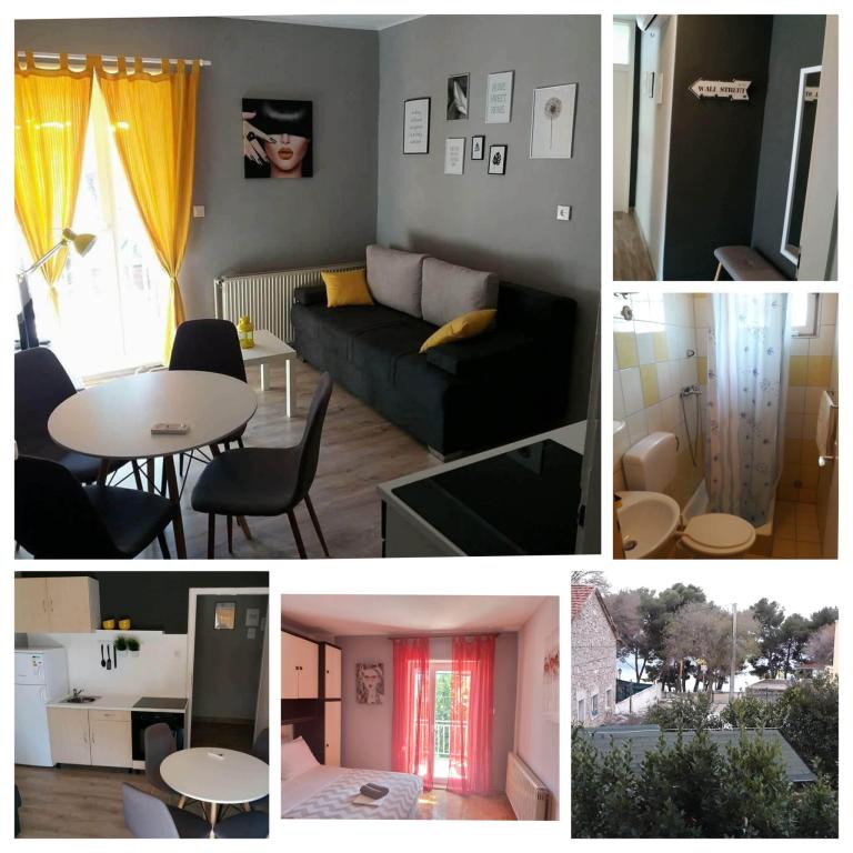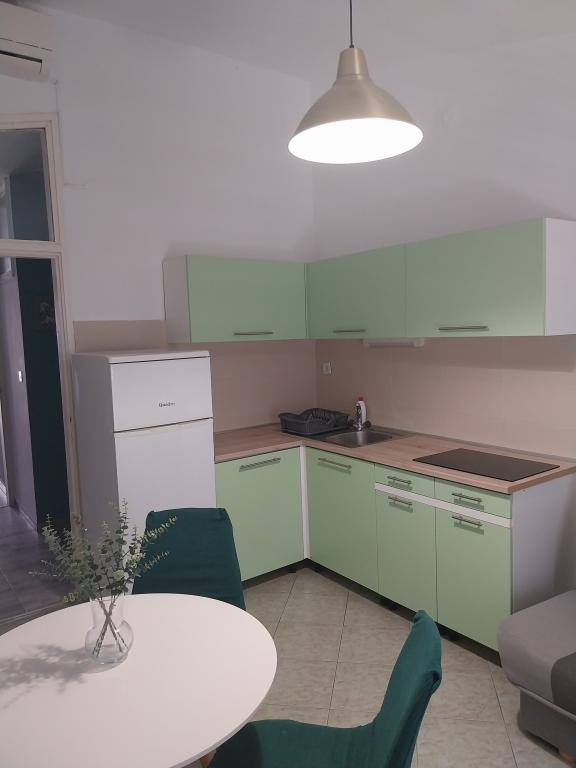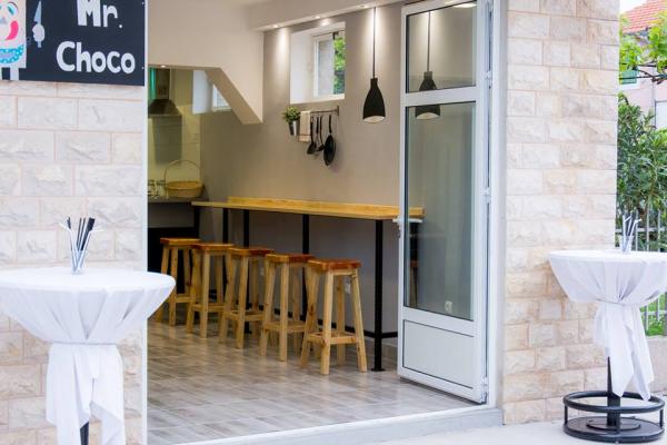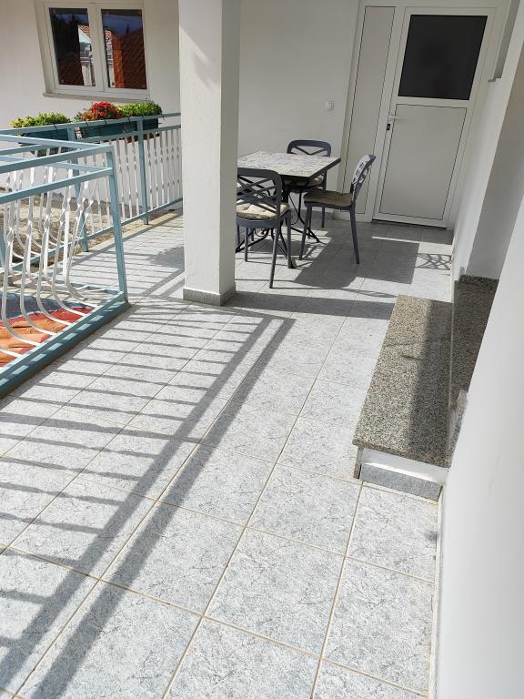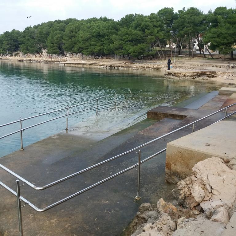 A ház 50 méterre található a fő strandtól. 2 kétszobás és 3 egyszobás apartmanból áll, összesen 16 fő befogadására alkalmasak, egy csendes utcában. A közelben éttermek, üzletek, pékség és pizzéria található. Parkolás biztosított.