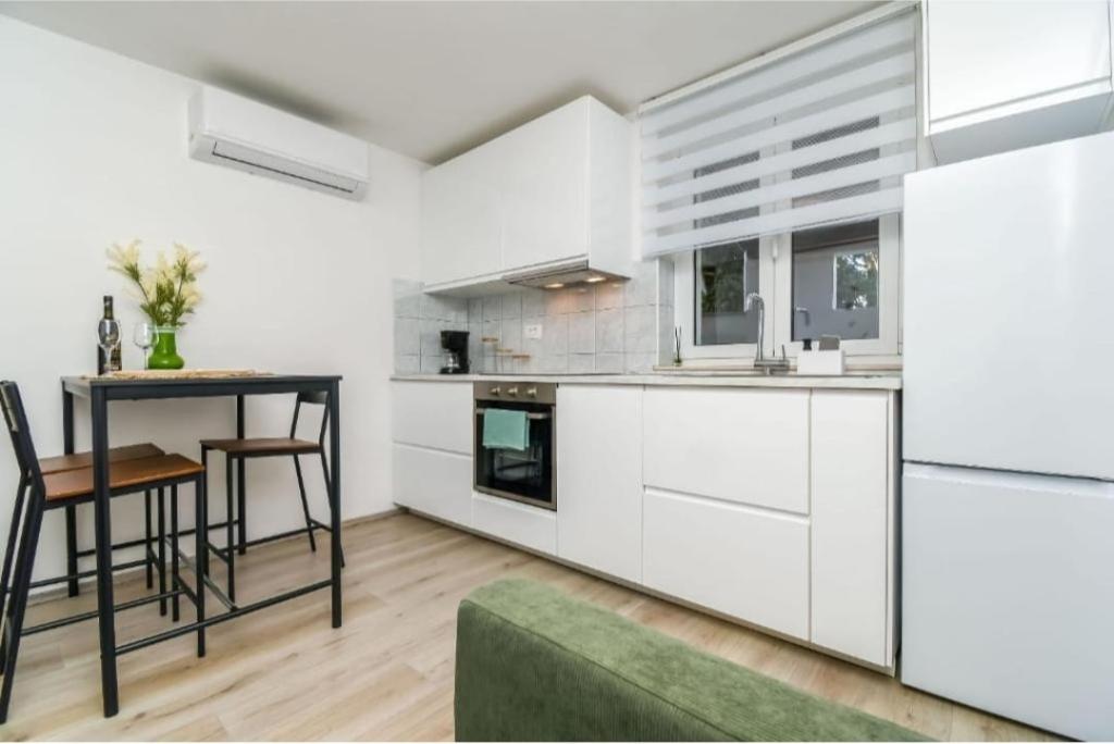 Üdvözöljük az Apartman Žunta apartmanban! Az apartman mindössze 5 perc sétára található Trogir UNESCO által védett történelmi központjától. Az apartmanban teljesen felszerelt konyha található mosogatógéppel és kávéfőzővel. A fürdőszobában zuhanyzó és hajszárító, valamint egy különálló, tágas hálószoba található king size ággyal. Az apartman előtt egy terasz található, ahol hintaágy is található. Az apartman egy magánház része, és külön bejárattal rendelkezik. A csendes környéknek köszönhetően nagyon jó helyen találhatóak, és nagyon közel vagyunk a városközponthoz, a látnivalókhoz, a szupermarketekhez, a repülőterekhez és a strandokhoz, amelyek közül sok a közelben található. A szálláshely ingyenes parkolást, ingyenes wifit és légkondicionálóval ellátott fűtést/hűtést kínál. Az apartman csak két fő részére van bejegyezve.