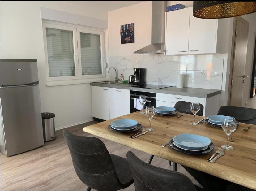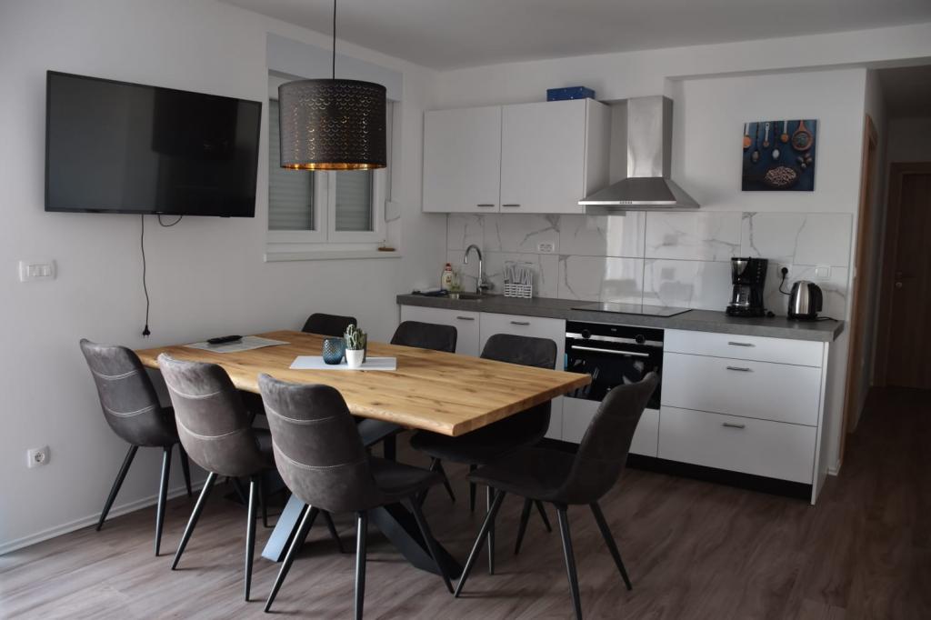 Augusztusban 14 gyönyörű napot töltöttünk el egy baráti családdal ebben a nagyszerű létesítményben, így az apartmanok és a medence is csak magunknak volt. Az apartmanok nagyon modernek és a kültéri rész is nagyon színvonalasan felszerelt (több ülőhely, elegendő nyugágy, nagy napernyő). A szállásadóval a kapcsolattartás kezdettől fogva nagyon szívélyes volt, és Pavlinusic úr telefonon mindig elérhető volt tartózkodásunk alatt. A komplexumból remek kilátás nyílik a szárazföldre és a tengerre... még a nyaralógépek fel- és leszállását is megnézheti (alacsony repülőgépzaj, ami minket nem zavart). Az út felfelé a nyaralóhelyig eleinte kicsit megszoktuk, mert nagyon meredek volt. A strand pár perc alatt elérhető gyalogosan és nekünk kisgyerekkel teljesen megfelelő volt... tiszta víz és nem túlzsúfolt. Kedves Pavlinusic család, otthon éreztük magunkat Önökkel és szívesen jönnénk máskor is!