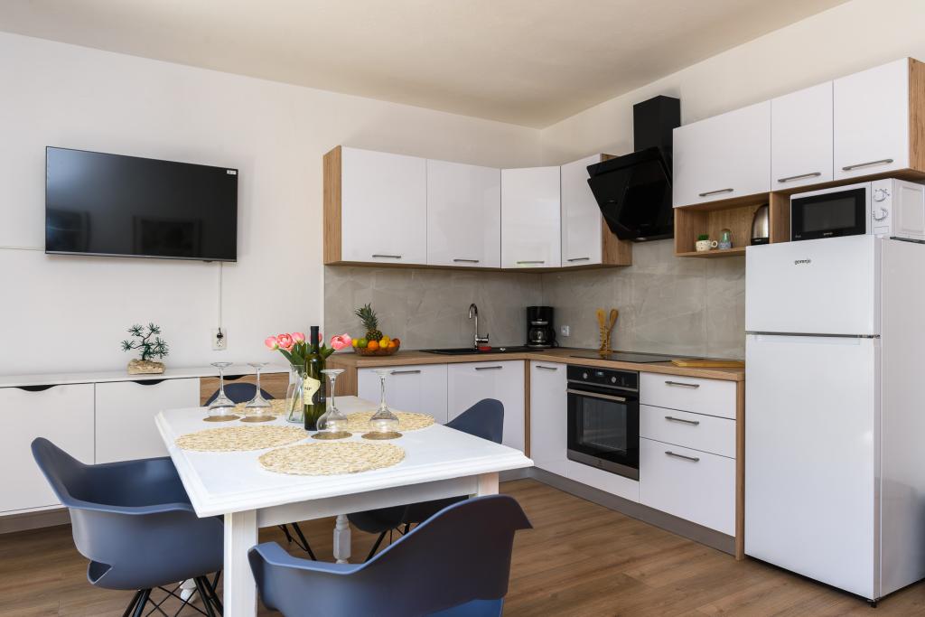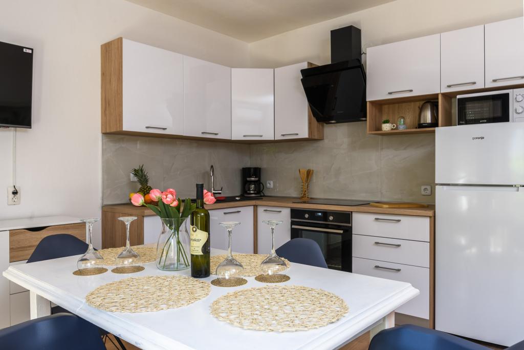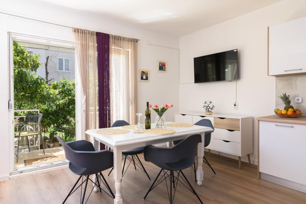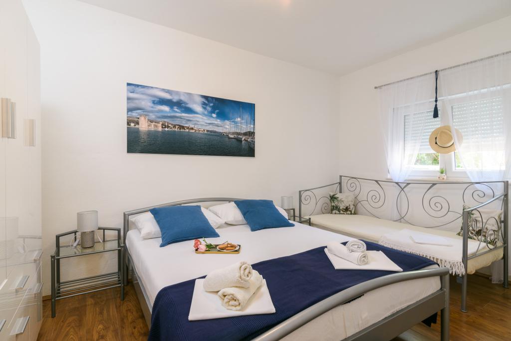 Mi található egy csendes részén Trogir, távol a központtól néhány 400m, és a legközelebbi bolt, gyógyszertár, a hal és a zöld piac. A létesítmény két részből áll, amelyek a modern, légkondicionált, és ingyenes parkolási lehetőséget biztosít az autó, valamint Wi-Fi internet-hozzáférés.