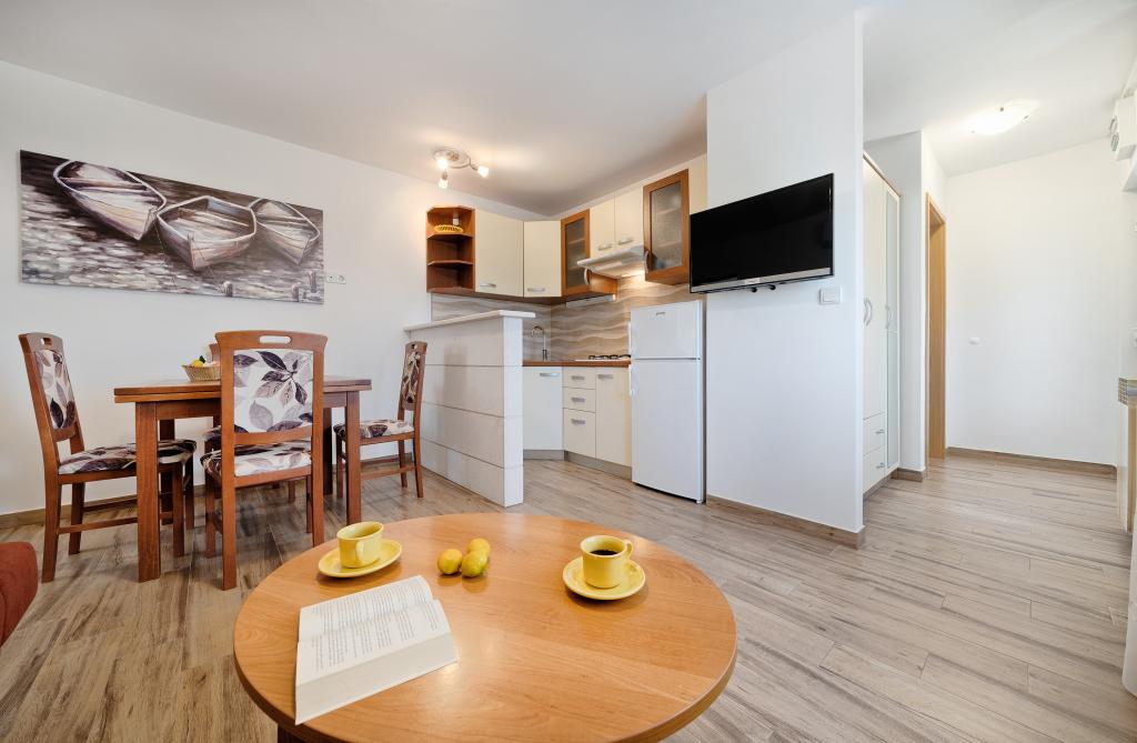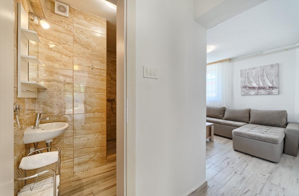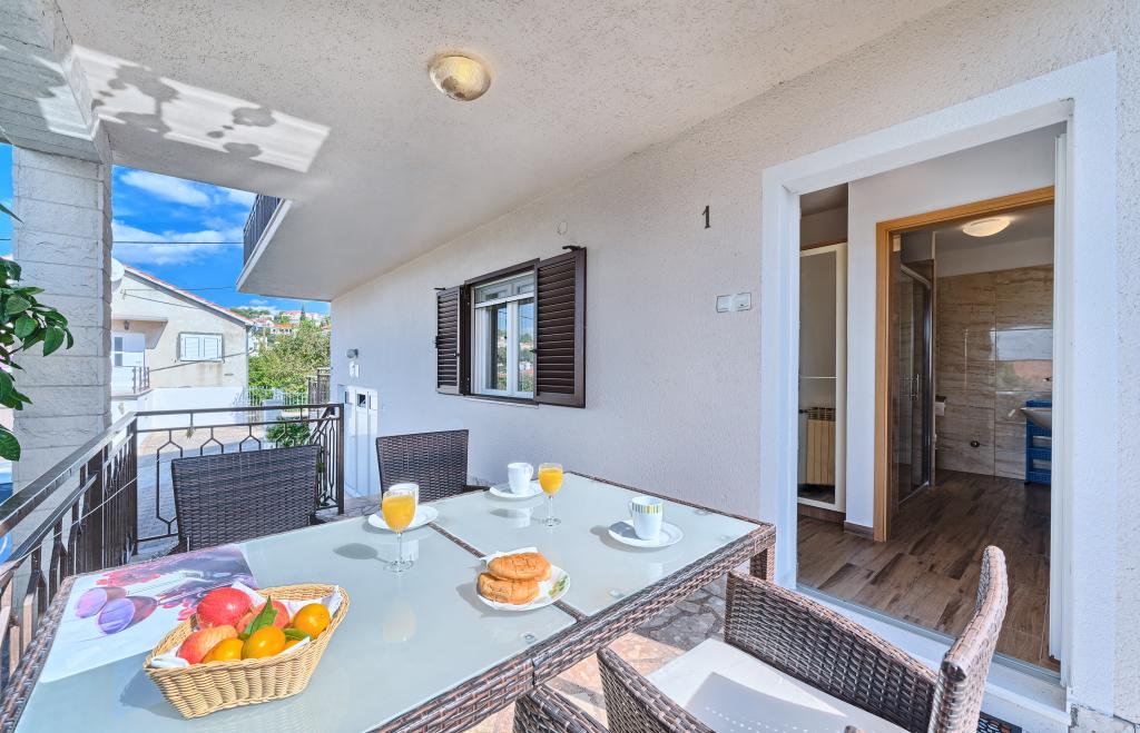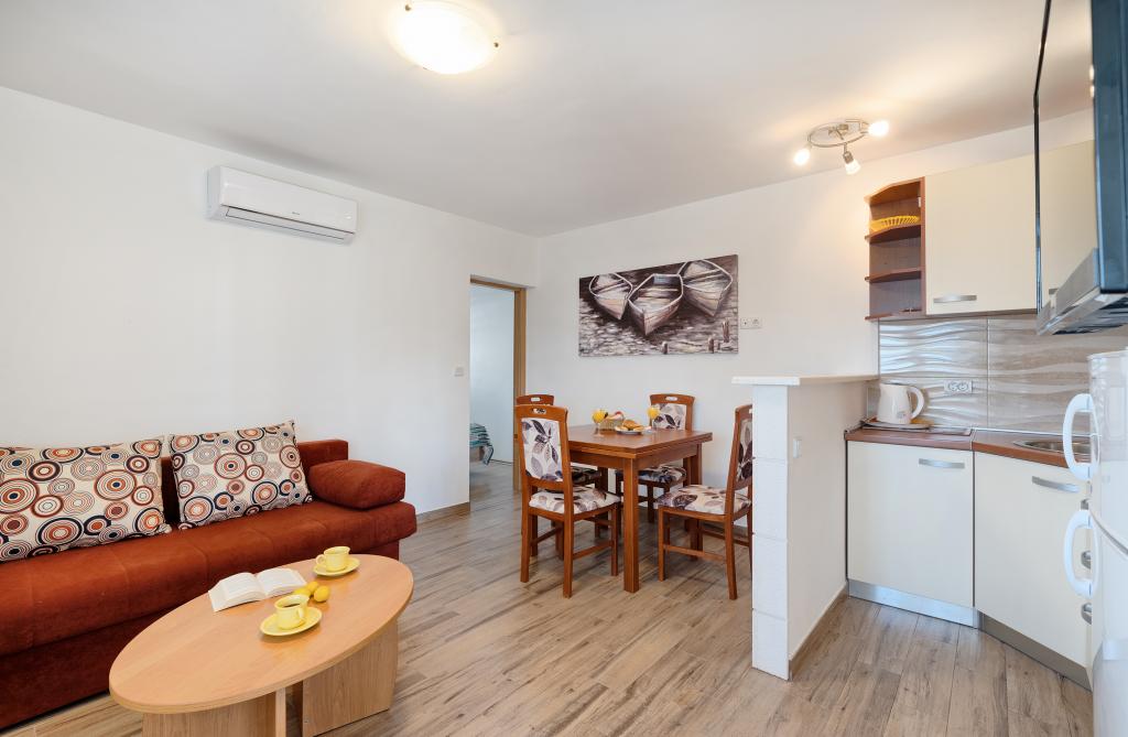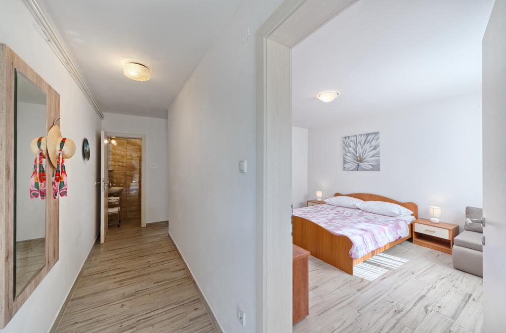 Az Apartments Bareta a Ciovo szigeten található, Trogir községben. Nagyszerű helyen fekszik azok számára, akik szeretnék élvezni a napot és a tengert, valamint azok számára, akik meg akarják ismerkedni Közép-Dalmácia történelmi és természeti szépségeivel. Trogir UNESCO óvárosa mindössze 1000 méterre található, míg Split (Diocletianus-palota, kompok szigetek számára), Omiš, Cetina (rafting, canyoning, hegymászás), Krka-vízesések és Šibenik 50 km-re fekszik. Spliti repülőtér mindössze 5 km-re található. Az apartmanok kerttel és növényzettel körülvett családi ház földszintjén találhatók. Minden apartman saját bejárattal rendelkezik, és egy nagy terasszal étkezőasztallal, parkolóval és grillezővel, valamint kültéri zuhannyal lehetséges. Az apartmanok egy konyhával összekötött nappaliból, egy hálószobából (ágy 2 1, 2 2), esetleg két felnőttből és két gyermekéből állnak, egy fürdőszobából, WC-vel. Az apartmanok teljesen felszereltek, amire szükség van a kényelmes tartózkodáshoz / edények, ágyneműk, stb.) Tr