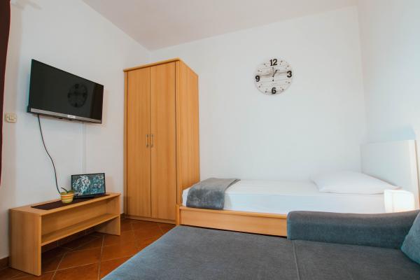 A Sara Apartmanok Čiovo szigetén, Mastrinka faluban találhatók, Trogir városától 3 km-re. A tengertől való távolság 20 m. A strand gyermekek és felnőttek számára egyaránt alkalmas, mivel sok természetes árnyékot kínál. A strand kavicsos és részben betonozott. A tenger nem mély, így gyermekek számára is alkalmas. A szupermarket 40 méterre található az apartmantól. Minden apartmanhoz saját parkoló, légkondicionáló és wifi tartozik. További kérdésekkel kérjük, küldjön e-mailt. Amint lehetséges, válaszolunk. Köszönjük. Belas család.