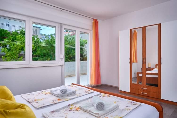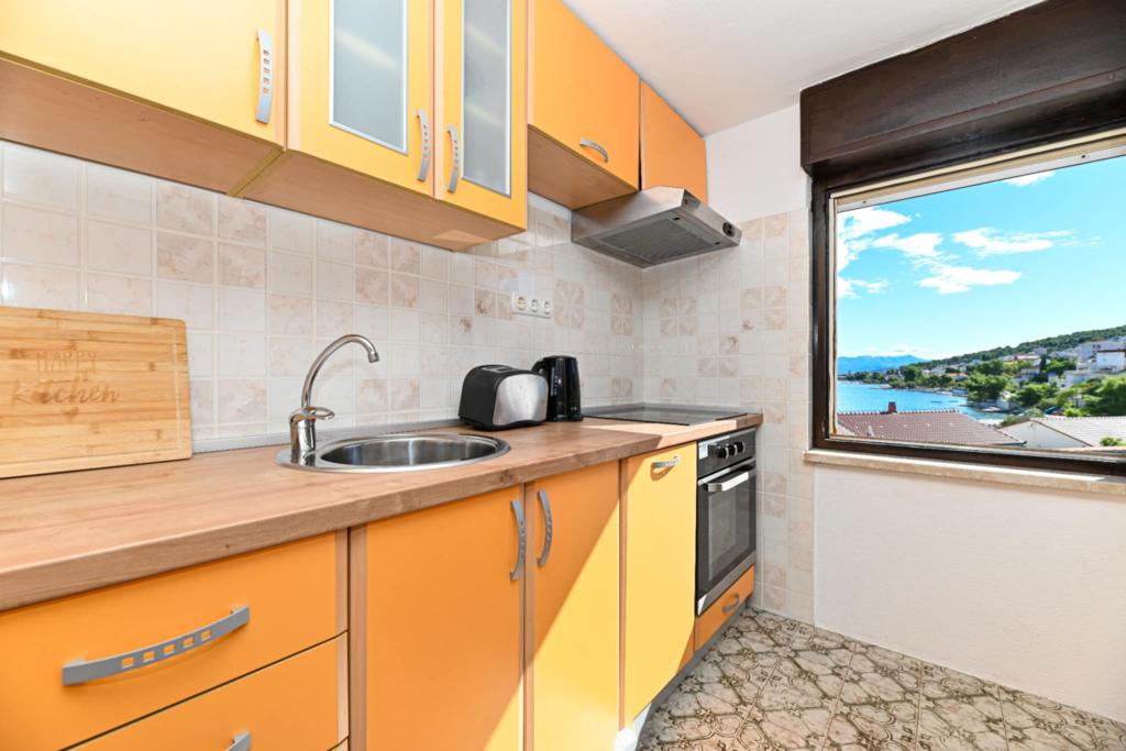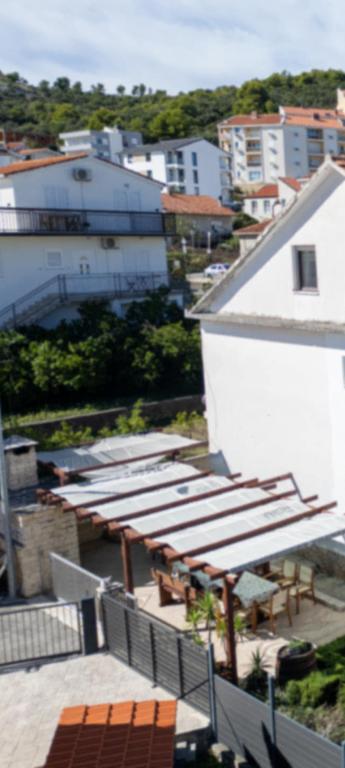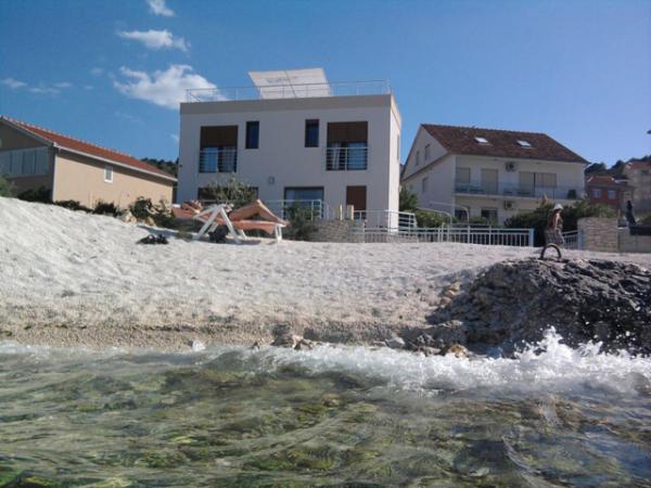 A ház Mastrinka településen található, egy gyönyörű öbölben, Čiovo szigetén. A ház 2 km-re van Trogirtól és 5 km-re a repülőtértől. Trogir az UNESCO védelme alatt álló város gyönyörű szépségével, és a művészet csodálatos érzését kínálja régi magjában. Mindezek mellett változatos GASZTRO kínálat, valamint éjszakai élet garantált szórakozást biztosít. Éjszakai élet gazdag kínálata, táncpartik nyitott nyári teraszokon, élőzene minden generációnak, disco klubok, bulik, fesztiválok, koncertek, klapa éneklés. A házban 3 teljesen felszerelt, légkondicionált apartman található, SAT TV-vel. Minden apartmanhoz saját erkély tartozik, ahonnan gyönyörű kilátás nyílik a tengerre és a strandra, amely mindössze 10 méterre van a háztól. Parkolás közvetlenül a ház előtt biztosított az autóval érkező vendégek számára. A környezet nyugodt és csendes, miközben a háztól pár percre van lehetőség szórakozni és szórakozni. Repülővel érkező vendégek számára lehetőség van ingyenes transzfer megszervezésére a repülőtér és az apartman között, illetve fordítva.