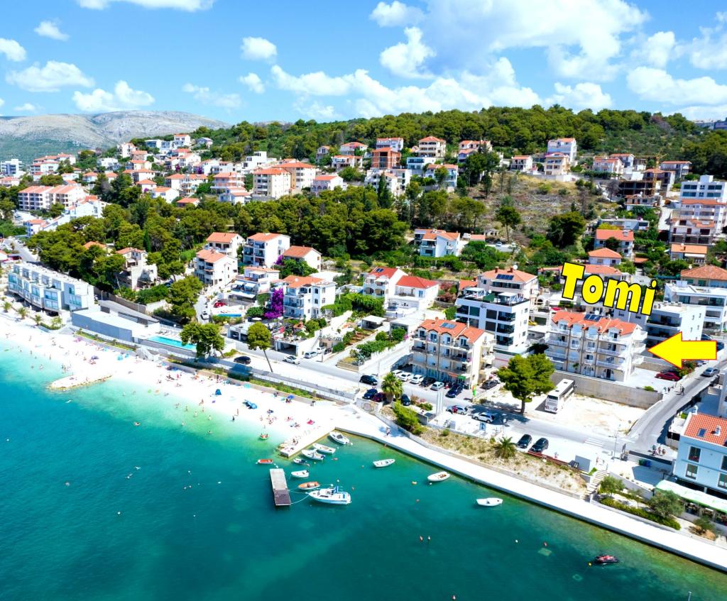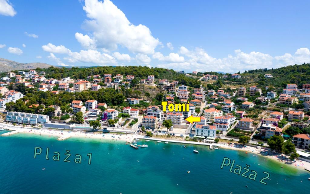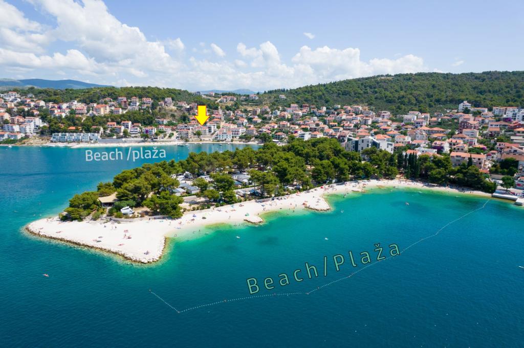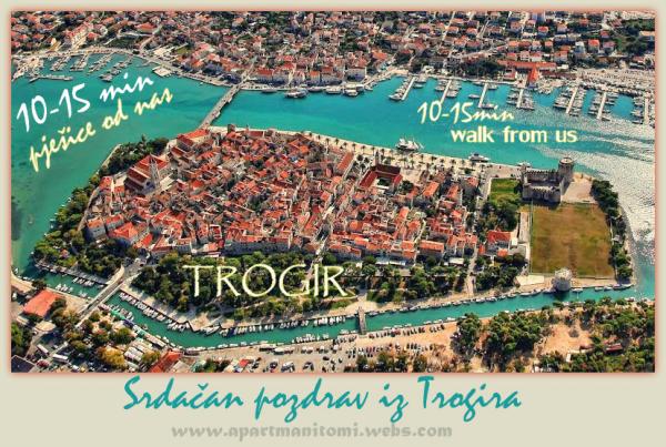 A mi házunk (Thomas Apartments) mellett található a tenger és homok (kavicsos) strandtól szigeten faluban Trogir. Trogir történelmi óvárosa mindössze 1500 méterre a házunk, vagy séta a 10 - 15 perc. Amellett, hogy az úgynevezett egy gyönyörű város, amely a Világörökség része az UNESCO védelme alatt, múzeumok, műemlékek, legendák, történetek, kőházak, harang torony, csónakok, vitorlák és a gyönyörű naplementék ... Trogir is ismert a híres élénk nyári estéken. 50 m-rel a lakásban van a homokos strandtól. A homokos strandok egymás után a hossza 2-3 km. A strand árnyékban azok számára, akik nem szeretik a közvetlen napfényt. Következő házunk van egy bolt, élelmiszer. Vendégeink részére van parkoló autó.