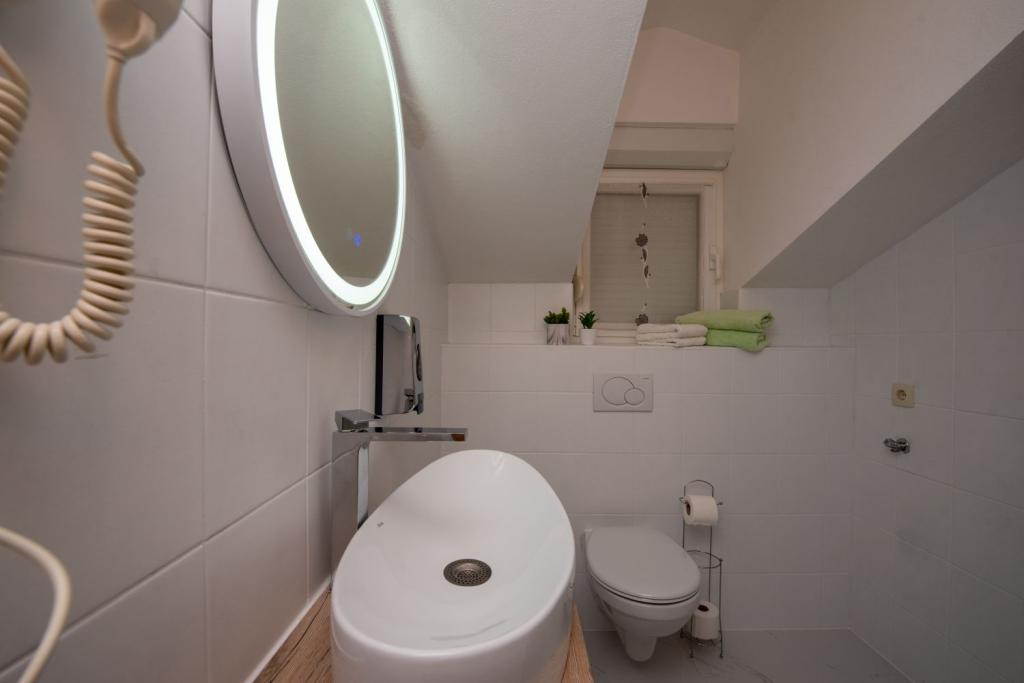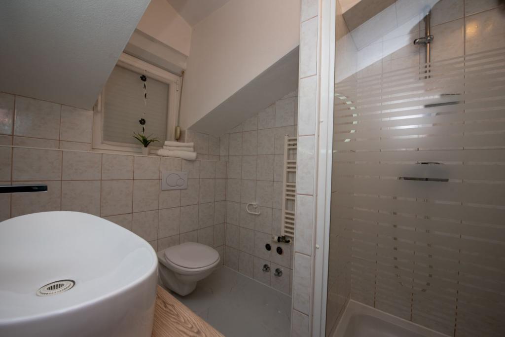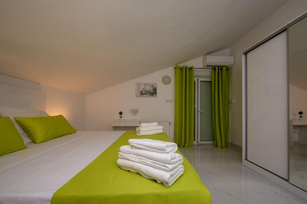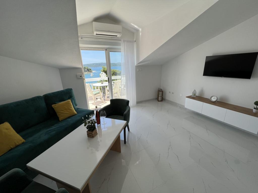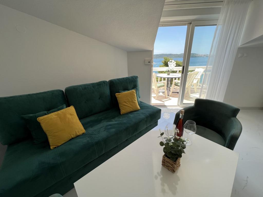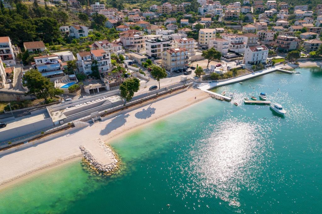 Egész új épület. Az ágy nagyon jó volt, összességében tiszta és szép, a házigazda nagyon kedves volt. Shop nagyon közel 30m. Talán csak mínusz egy dombos séta Trogirig, a Town shortcut 1000m, nagyon szép. A vidék fantasztikus és éjjel is, mert ételeket és italokat kínál más barátaival és bárjaival a strandon.