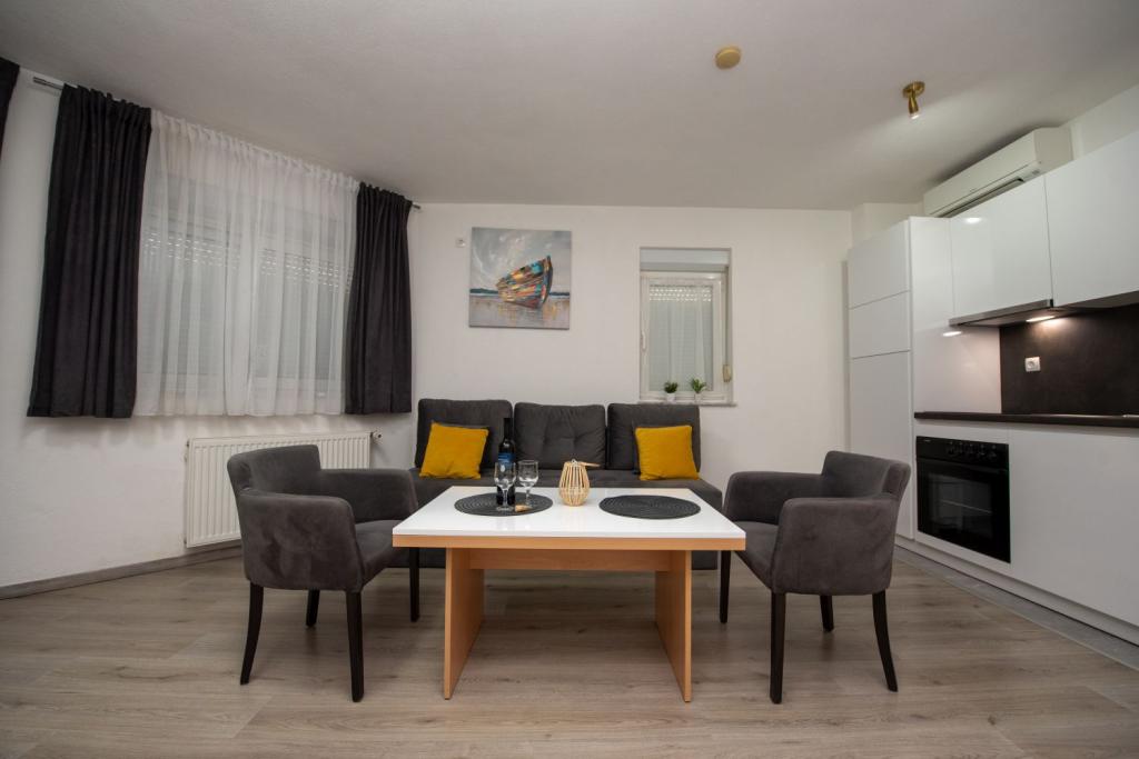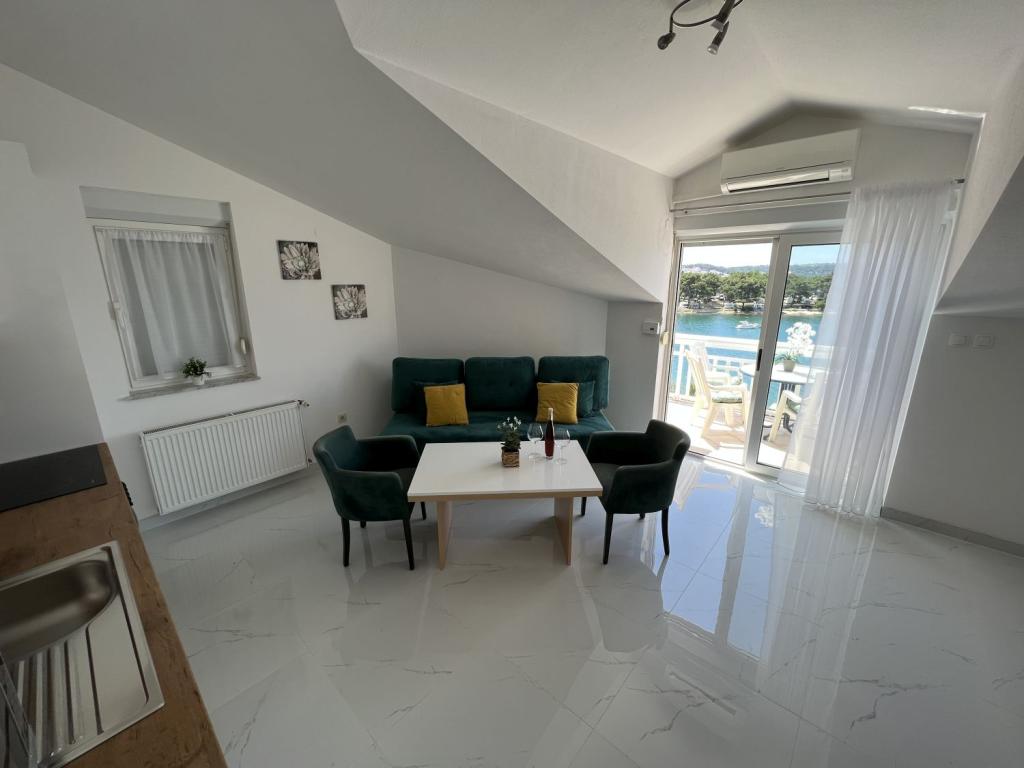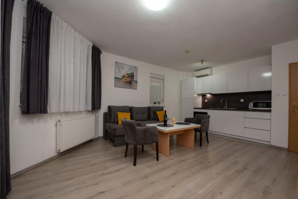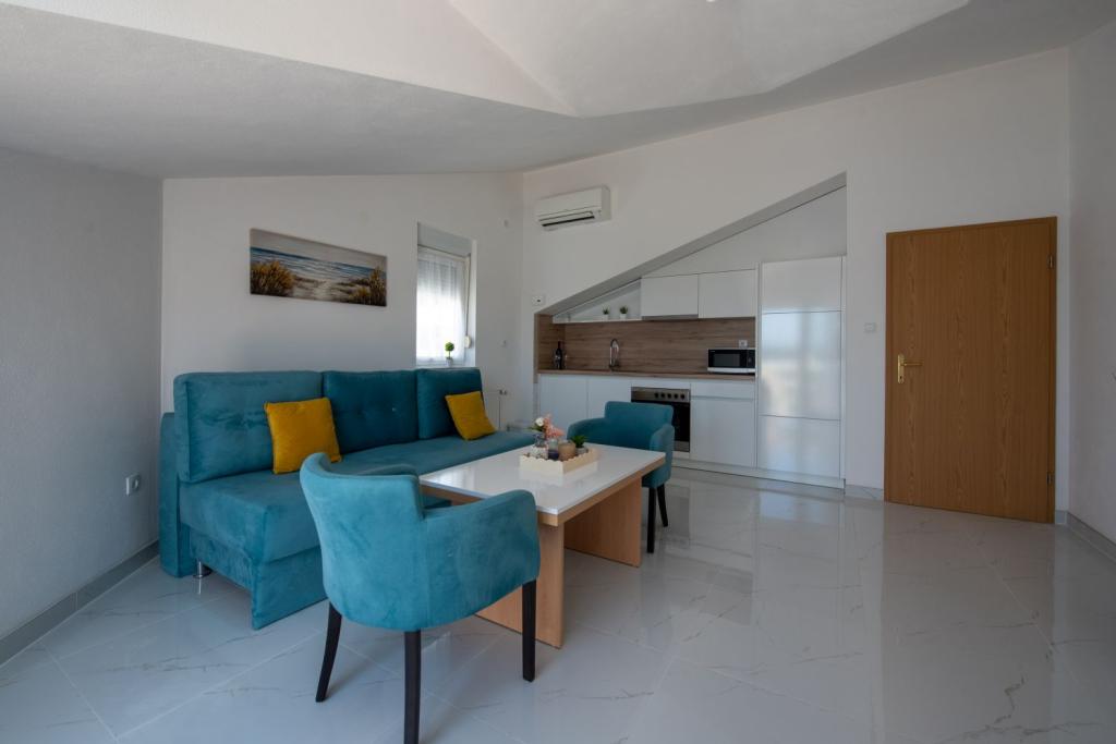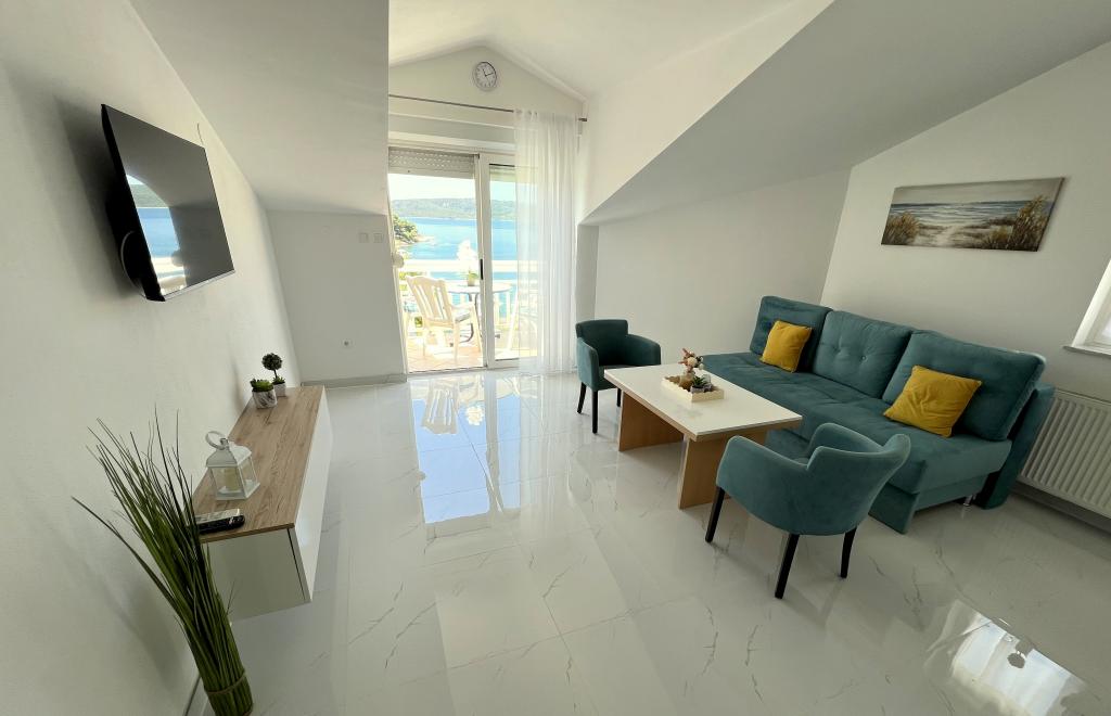 Nagyon kedves és barátságos tulajdonosok. Az apartman szép, tiszta, légkondicionált, terasszal és kilátással a tengerre. A szállás közvetlenül egy nagyon szép kavicsos strand mellett található, az élelmiszerboltok pedig közvetlenül a szállás mellett találhatók. 2-3 percre a pékségtől és a Trogirba tartó taxitól. 15-20 perc sétára a központtól és a Copacabana strandtól. Köszönöm.