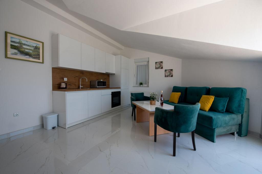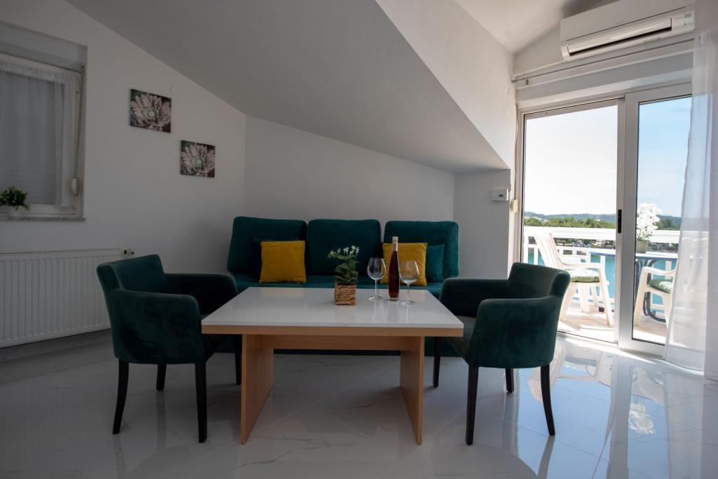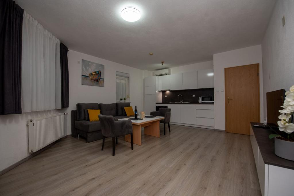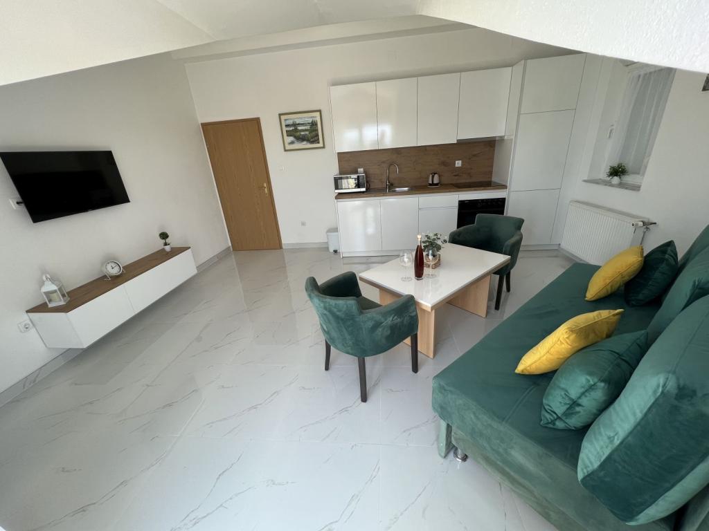 Nagyon kedves és barátságos tulajdonosok. Az apartman szép, tiszta, légkondicionált, terasszal és kilátással a tengerre. A szállás közvetlenül egy nagyon szép kavicsos strand mellett található, az élelmiszerboltok pedig közvetlenül a szállás mellett találhatók. 2-3 percre a pékségtől és a Trogirba tartó taxitól. 15-20 perc sétára a központtól és a Copacabana strandtól. Köszönöm.