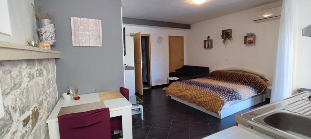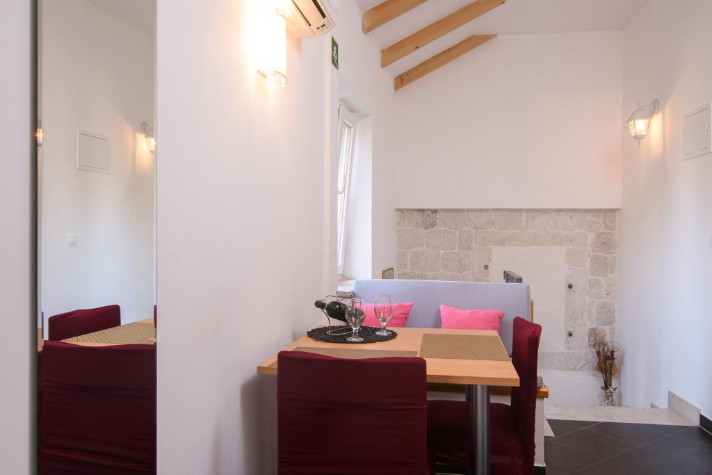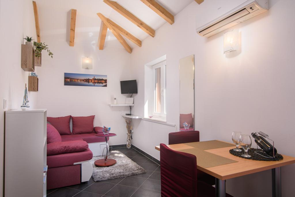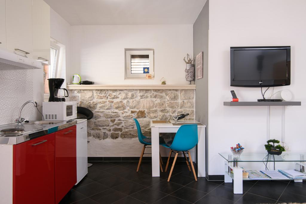 Vadonatúj és modern berendezésű 4*-os apartmanok Trogir óvárosában, Čiovo szigetén találhatók. A földszinten egy stúdió (2 fő részére), az emeleten pedig egy apartman (2 + 1) található. Az apartmanok teljesen felújítottak (2014), autentikus kőfalakkal, több mint 200 évesek, és teljesen felszereltek új bútorokkal. Ezek a kényelmesen berendezett apartmanok légkondicionáltak és ingyenes vezeték nélküli internet-hozzáféréssel rendelkeznek. Minden szálláshoz saját fürdőszoba tartozik hajszárítóval. A létesítmény mindössze 2 percre van Trogir óvárosától. A közvetlen közelben strandok 5 percre találhatók, egy kis kikötő csónakokhoz, üzletek, éttermek, piac és számos kávézó. Az apartman előtt van egy kis Trogir-Split hajóterminál. Csónakot, kerékpárt vagy robogót is bérelhet ott. Az apartmanok egy csendes családias környéken találhatók, régi kőházakkal körülvéve, közvetlenül a tenger mellett, felejthetetlen kilátással az óvárosra! Ingyenes parkolás biztosított minden vendég számára. Isten hozott :)