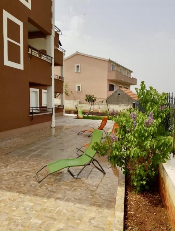 Korszerűen felszerelt apartmanok egy csendes dombon, gyönyörű kilátással a tengerre és Trogir városára. A ház mindössze 10 perces sétára található a városközponttól és a legjobb éttermektől. A kavicsos strand mindössze 150 m-re, az erdőn át vezető ösvényen található.