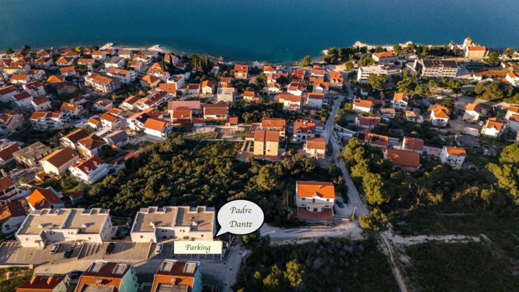 A PADRE DANTE szálláshely egy újonnan berendezett apartmannal és fürdőszobás szobákkal várja vendégeit, melyek mindegyike új, és videómegfigyeléssel ellátott parkolóhellyel rendelkezik. Az ingatlan 150 méterre található a strandtól, üzlettől, étteremtől (a Hotel Sv.križ étterme 6-10 hónapos kortól tart nyitva), fogorvostól, gyógyszertártól, Trogir központja pedig mindössze 4 km-re, a repülőtér pedig kb. 6 km-re található.