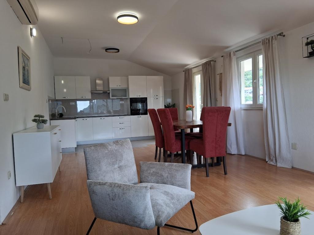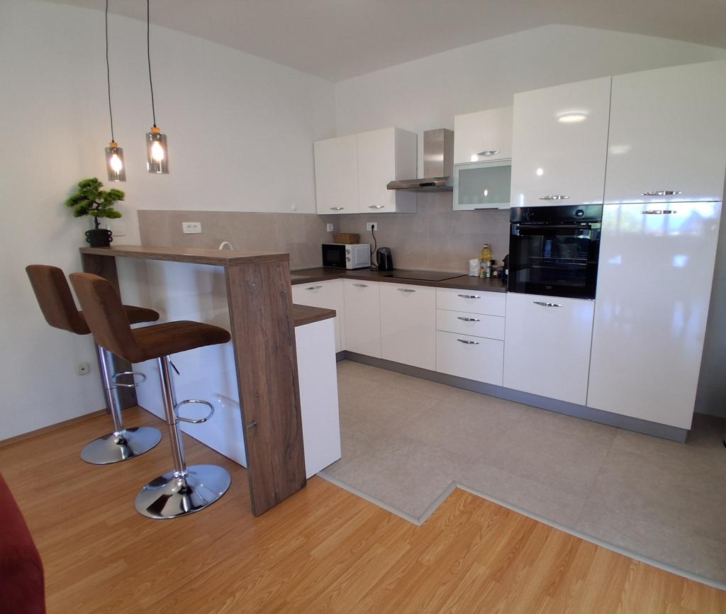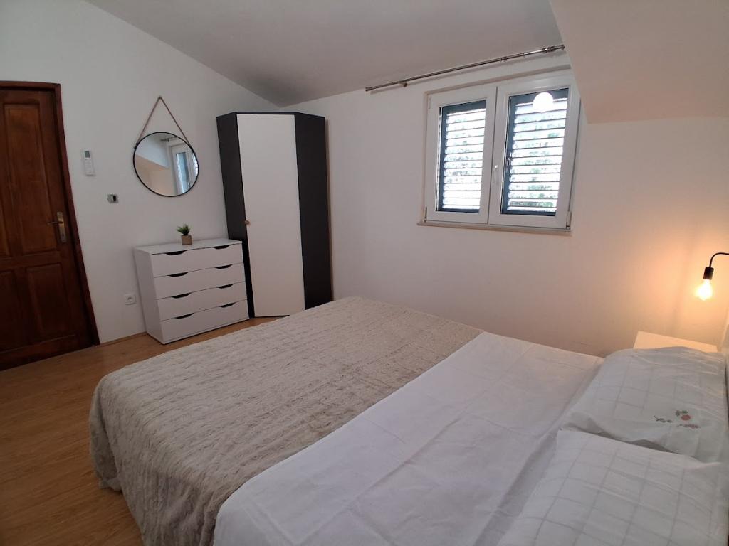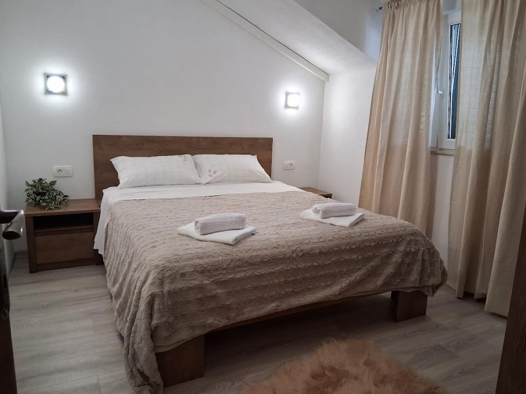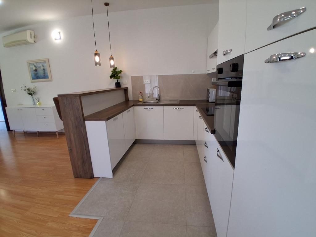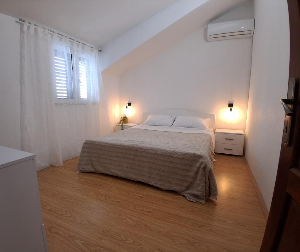 Teljesen és modernül felszerelt, két hálószobás, nagyméretű apartman tengerre néző kilátással és nagy fedett terasszal - az egész emeletet elfoglalja, valamint egy hálószobás apartman a földszinten csodálatos terasszal. A KÉT HÁLÓSZOBÁS APARTMAN két hálószobából áll, melyekben franciaágyak vannak, egy fürdőszobából, tágas konyhából és nappaliból, melyben kanapéágy található, amely szükség esetén ággyá alakítható. Az EGY HÁLÓSZOBÁS APARTMAN egy szobából áll, amelyben franciaágy található, plusz egy harmadik személy számára pótágy is rendelkezésre áll. A nappaliban kanapéágy elhelyezésére is lehetőség van. 5-7 percre a gyönyörű strandtól és a strandbártól; a központtól kb. 10 perc sétára. Az ár tartalmazza a parkolást, WI-FI-t, légkondicionálót minden szobában, törölközőket, mosógépet és mosogatógépet, WC-t, vízforralót, kávéfőzőt (két hálószobás apartman), hajszárítót, vasalót és vasalódeszkát (két hálószobás apartman).