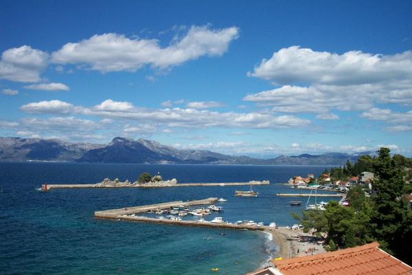 Majo apartmanok erkéllyel lélegzetelállító kilátás nyílik a városra és a tengerre, és mindössze 5 perc sétára a strandtól. Nagy terasz asztalokkal és grillező alkalmas két család meghosszabbításai.