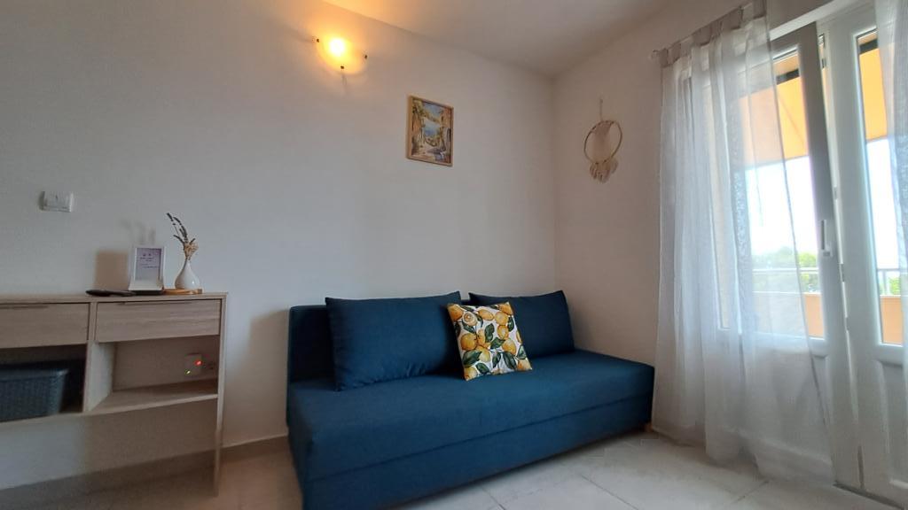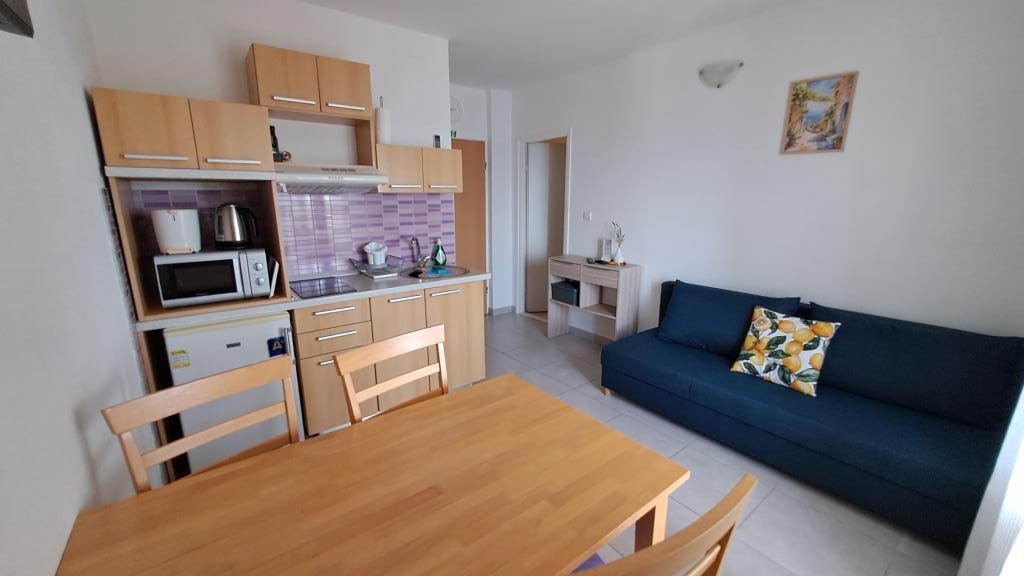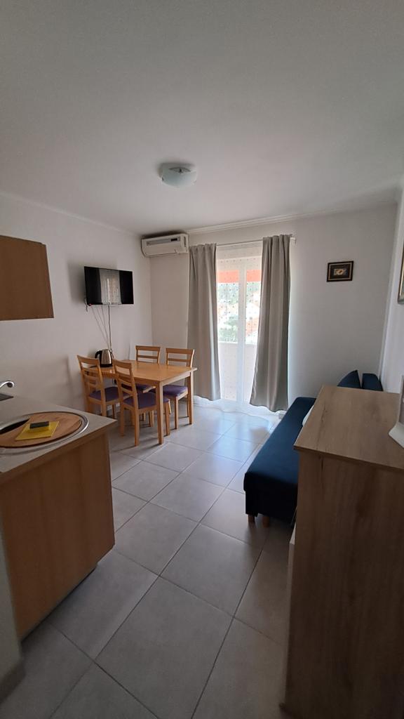 Teljesen új és modern bútorozott lakás Trpanjban, első sorban a tengerhez, a ház második emeletén. A létesítmény pár lépésre található a strandtól és percre a városközponttól. Az apartman egy hálószobából, teljesen felszerelt konyha étkező és nappali, fürdőszoba és nagy terasz. A szoba tartalmaz egy franciaágyat és egy pótágyat, míg a nappaliban egy kanapé található, maximum két fő részére.