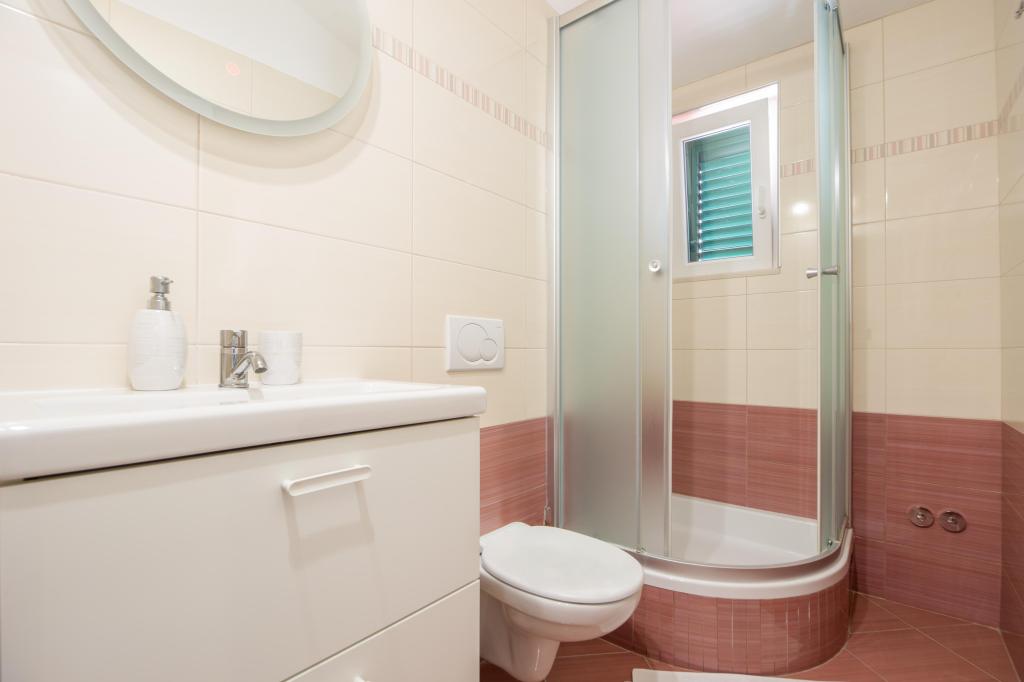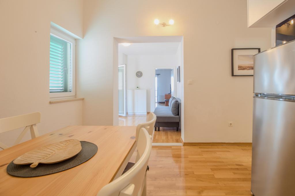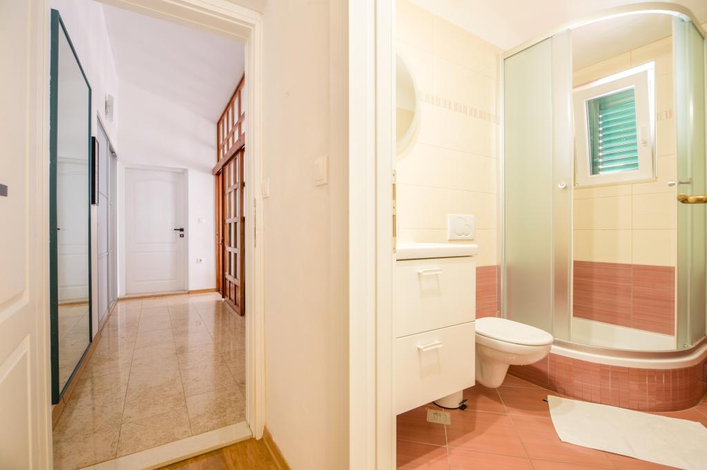 A ház az első sorban található a tenger felé, de ki van húzva, kb 30 lépcsőfok van a tengerhez és két gyönyörű strandhoz, így nem éri el minden zaj a sétányról. A gépkocsi beálló közvetlenül a ház mellett található, és az utca túloldalán is van további parkoló. A lakás elég tágas, ideális két kényelemhez szokott személy számára. Személyében szebb a lakás, mint a képeken. Minden megtalálható benne, ami egy kellemes tartózkodáshoz kell. A tisztaság szintje kiemelkedő. A lakás előtt két ideális árnyékot adó fa (hárs és hárs) található. Ottlétünk alatt csak egy napra kapcsoltuk be a klímát, pedig az a lakásban van és remekül működik. Az internet meglehetősen stabil és megbízható az egész házban. A tulajdonos nagyon szívélyes és nem tolakodó személy. Rendszeresen cserélt ágyneműt és törölközőt, és kivitte a szemetet.