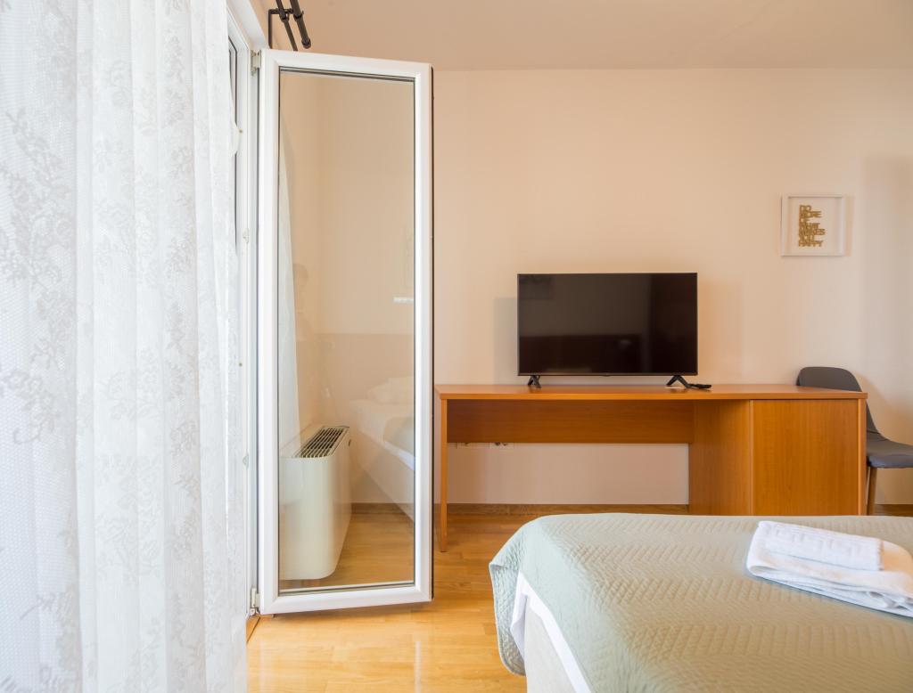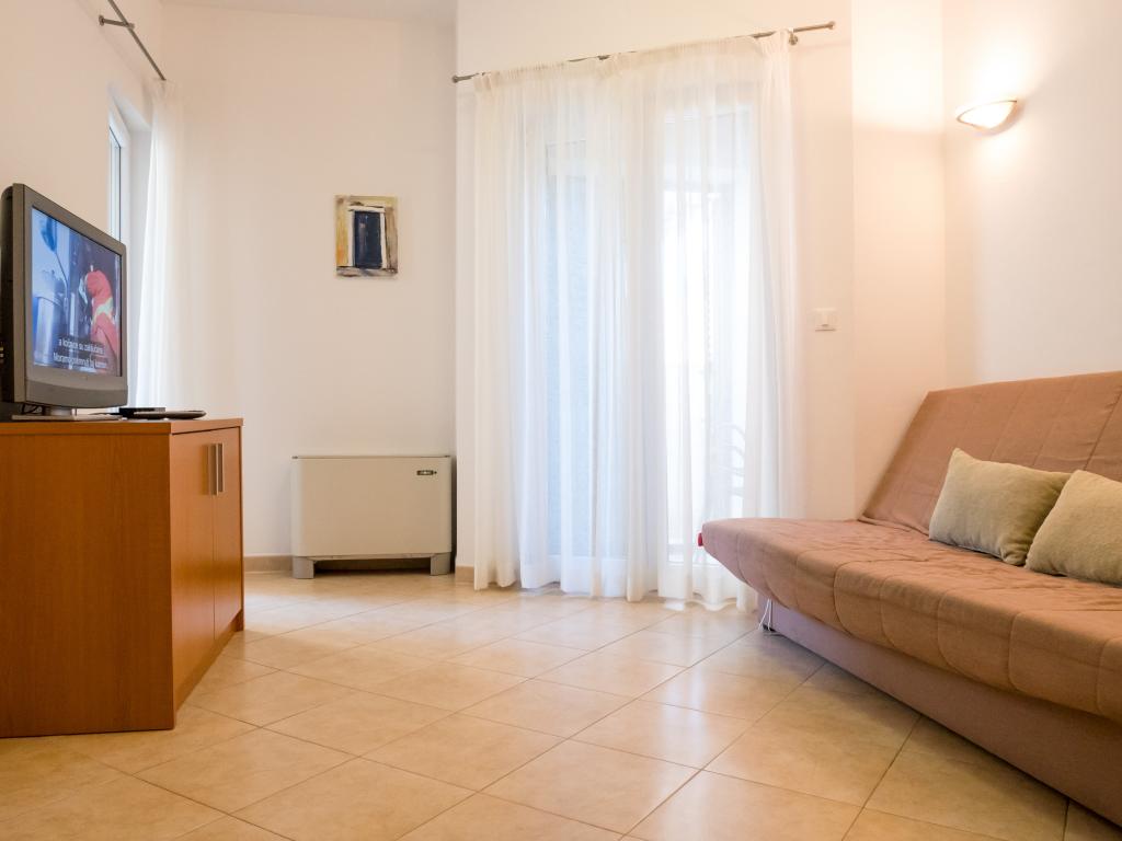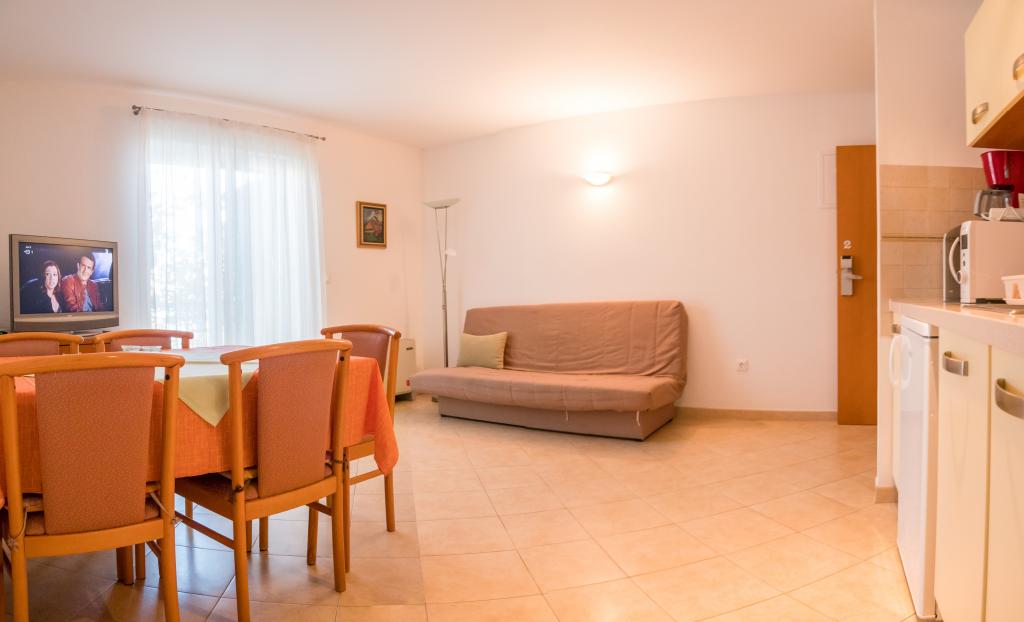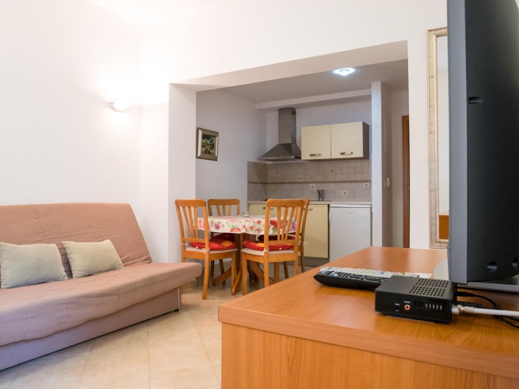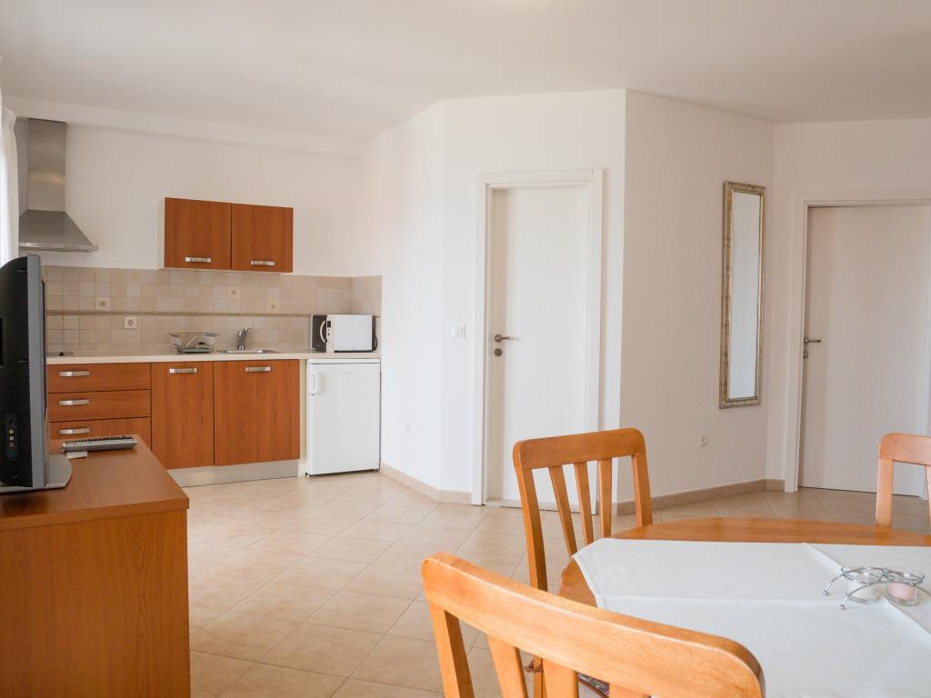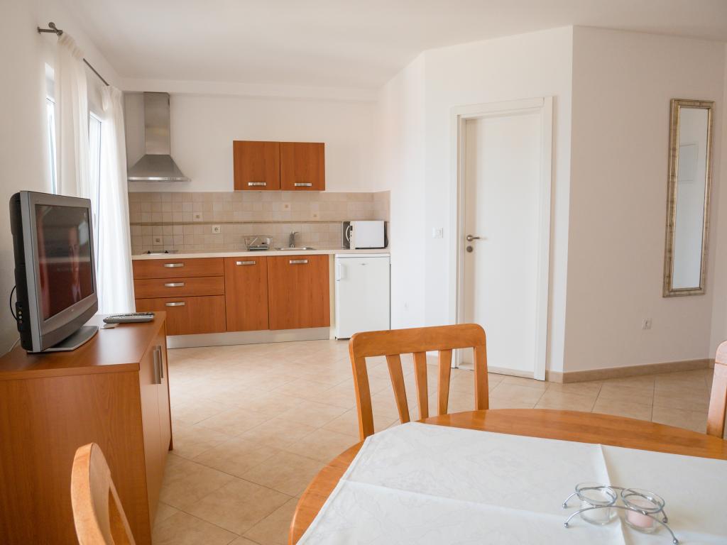Szép szállást, kilátással a more.Apartman is elég nagy. A strand csak a ház alatt, és nagyon szép, bár egy kicsit zsúfolt, de ez valószínűleg mindenhol. Szóval, szállás szuper környezetben.