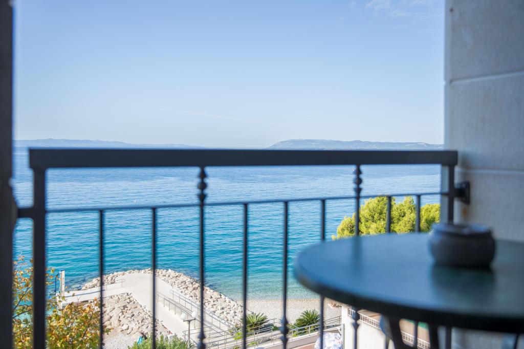 Újonnan berendezett apartman, kilátással a tengerre a második emeleten, és tengerre néző apartman a földszinten, a tengerparton Tucepi partján, első sor a tenger felé. Az apartman 100 méterre található a központtól, és a távolság a gyönyörű kavicsos strandtól mindössze 20 méter.
