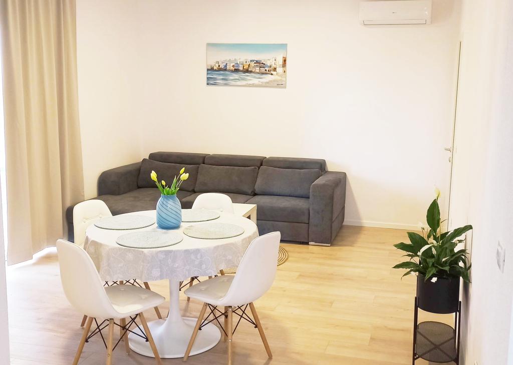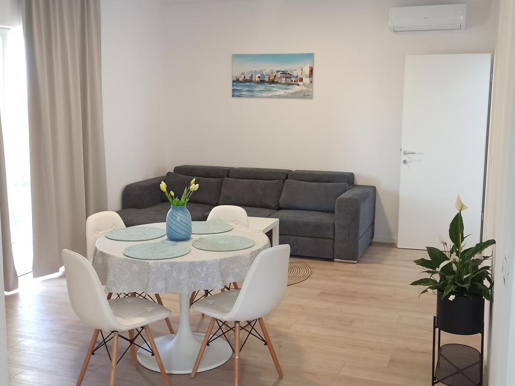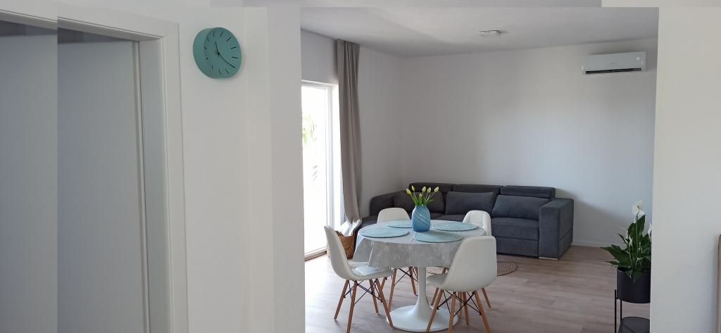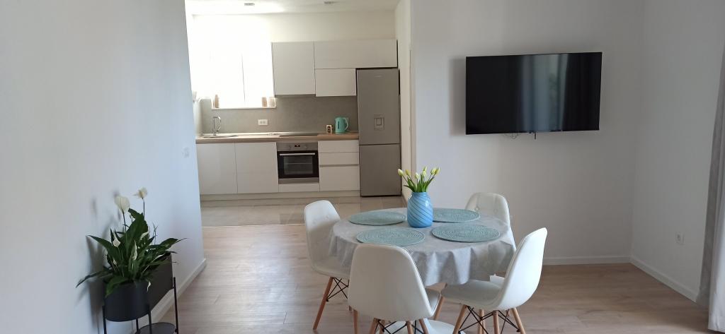Teljesen és modernül felszerelt apartman csendes környéken, 100 méterre a tengertől; Az ingatlan 2 perc sétára található a strandtól és 10 perc sétára a központtól.