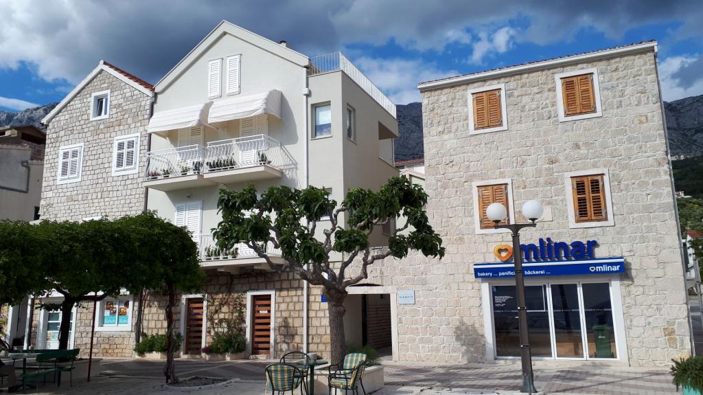 A létesítmény, Apartments Čobrnić, Kraj 75, Tučepi a falu központjában található, az óvárosban, Tucepi védett területén. A Čobrnić család az 1950-es évek óta foglalkozik az idegenforgalommal, több mint 70 éves hagyománya van. Az épület egy régi családi épület, amelyet 2015-ben rekonstruáltak. Három apartmanból áll, mindegyik kb. 55 m2, minden emeleten van egy apartman. Minden apartmanhoz tengerre néző terasz-erkély tartozik. A lakás felszerelése a régi és az új kombinációja, egyszerű és elegendő, romantikus és különleges! A létesítmény a falu központjában található, a tenger mellett, kikötőben, éttermekben ... Tucepi kevés megmaradt, régi környezetének egyikében.