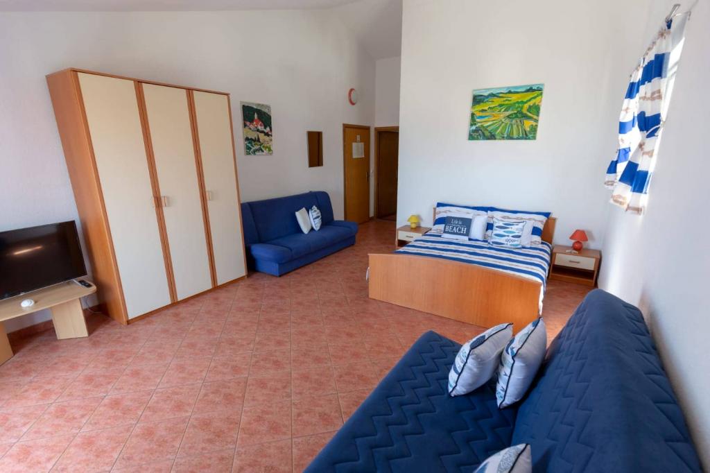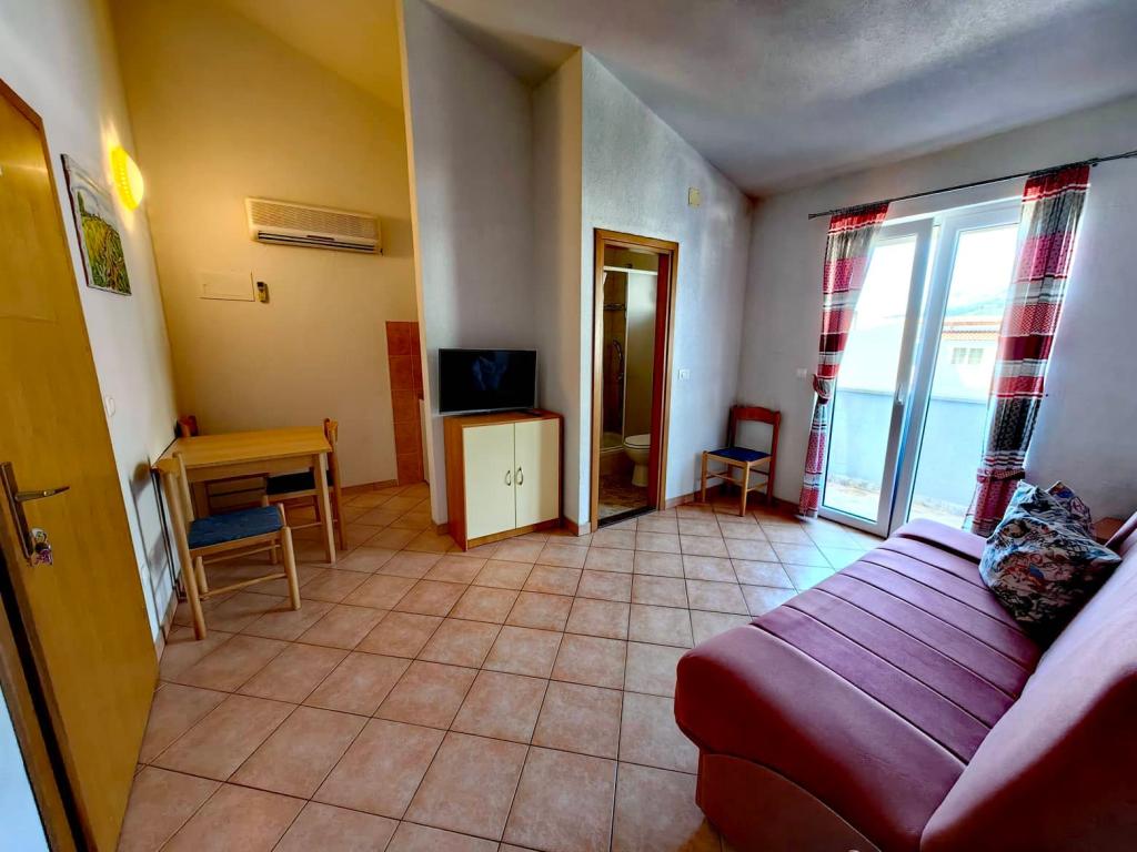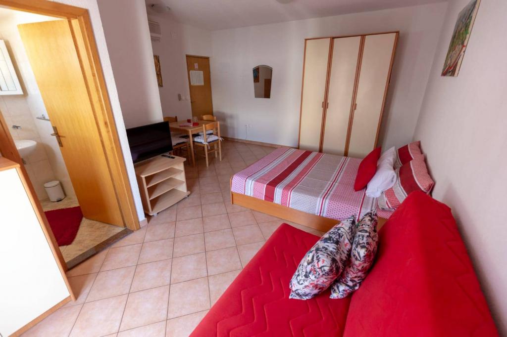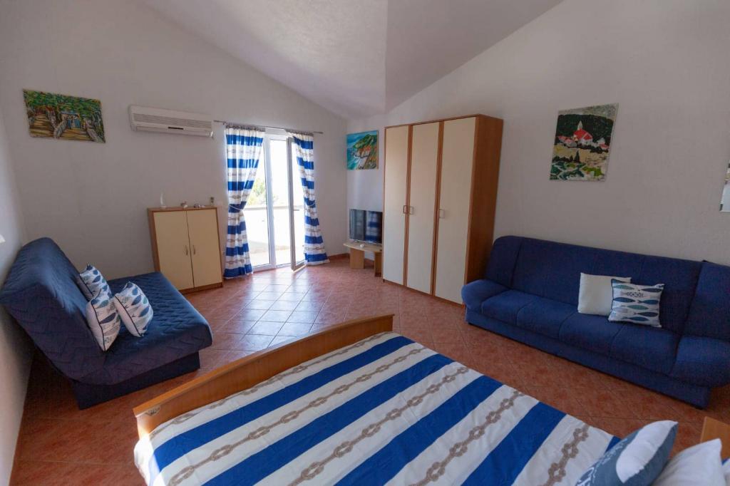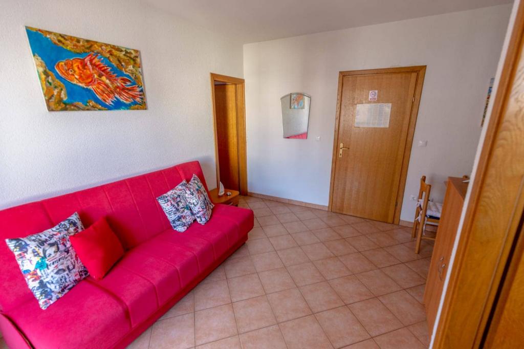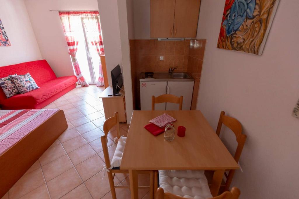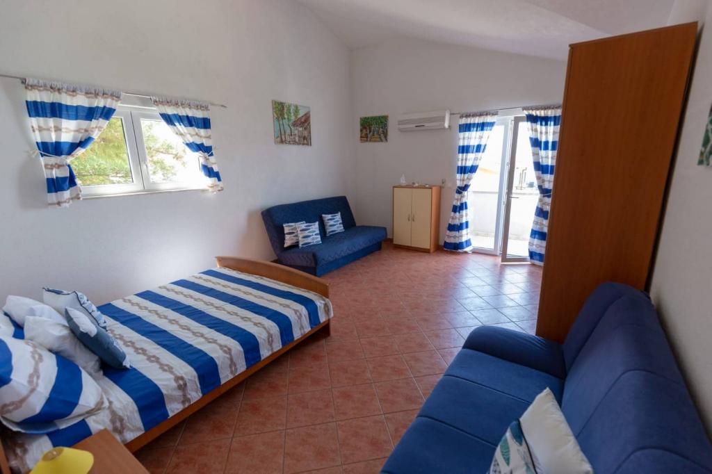 Az apartmanok 30 méterre találhatók a tengertől, az apartman közelében éttermek, bárok, szupermarket és egyéb létesítmények találhatók. Személyenként és éjszakánként 6 eurós felár ellenében reggelit biztosítunk a strand melletti épületben. Ideális autómentes nyaraláshoz. Érezze Dalmácia gyöngyszemeinek varázsát, pihenjen a 3 km-es strandokon a kristálytiszta tenger tükörképével.