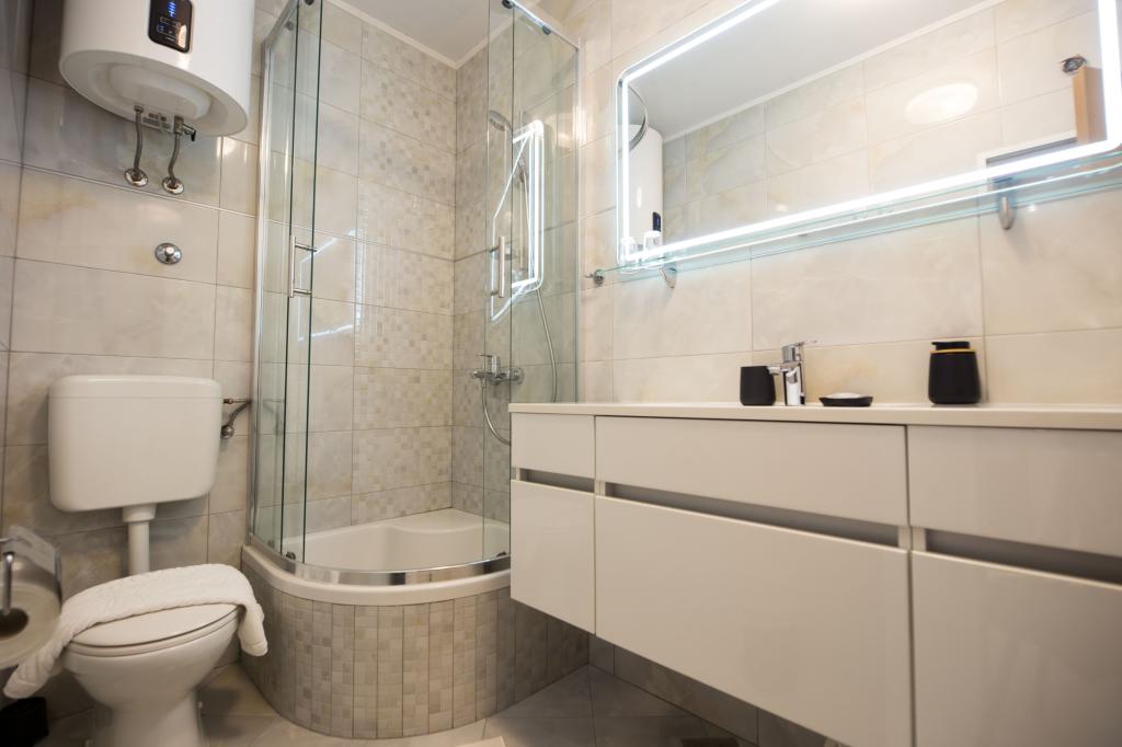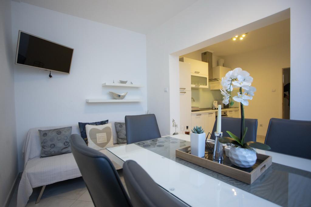 Lakossági adót az az ár tartalmazza.Kiváló feltételek, modern, tiszta és sértetlen apartmanok. Felszerelt mindent, amire szüksége van, és még sok minden mást. Iwo úr több apartmanjában már jártunk, és mindegyik élőben néz ki, mint a képeken. Vitlić mindig meleg és barátságos, ami még kellemesebbé teszi a tartózkodást. Ami a napozást illeti - a strandra való belépés max. 5 percig tart. Vannak zuhanyzók, öltözők és egyfa mellett növekszik egy fa is, amely lehetővé teszi a kellemes pihenést, például egy könyvvel az árnyékban. A tengerpart mentén sétány található kocsmákkal, gyorséttermekkel, kávézókkal és még egy játékteremmel is - mindenkinek valami. Nagyon ajánljuk, bár úgy gondolom, hogy az a tény, hogy visszajöttem ide, és a szüleim és a barátaim egy hét alatt odautaznak, bizonyítja, hogy valóban érdemes ezt a helyet választani a kikapcsolódáshoz. Köszönöm és üdvözlettel Lublin-tól