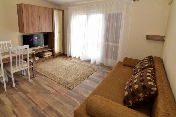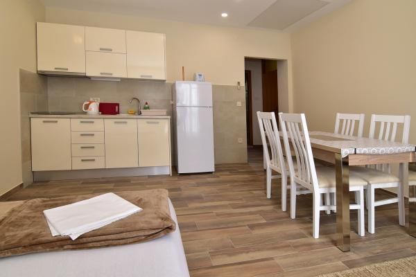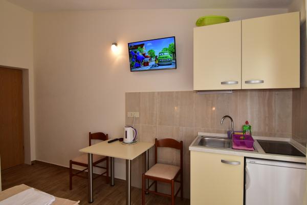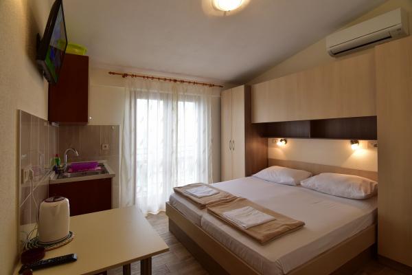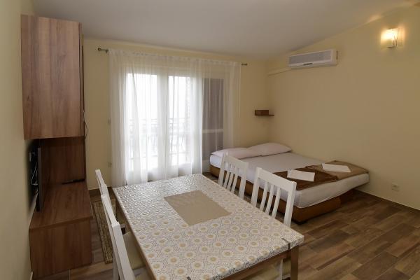 Az apartman található központjában az első sor a tenger közelében, a hosszú homokos strandok, üzletek, éttermek, posta és egyéb tartalmak, amelyek az érdeke, hogy nyaralás. Ez egy hálószoba, fürdőszoba, mini-konyha, étkező, nappali terasszal gyönyörű kilátás nyílik a tengerre, a szigetek és a természeti szépsége a hely.