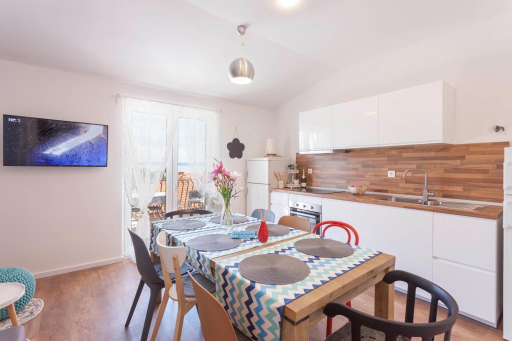 Teljesen berendezett apartmanok központjában Tucepi, egy kiváló helyen fekszik, minden szükséges kényelmi ahol a hangsúly a gyönyörű kilátás nyílik a tengerre. A házban több apartman is található, 20 fő. Ideális kisgyermekes családok, mert a nagy bekerített udvaron.