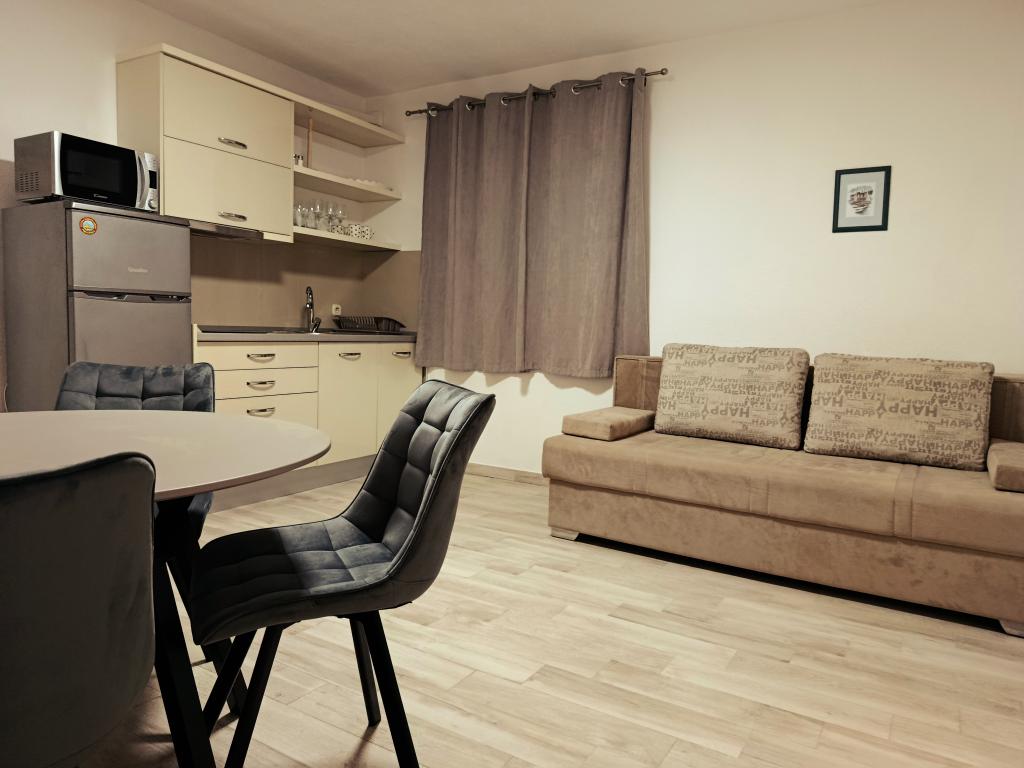 Az Apartments Mitan Tučepi központi részén, a főút mentén található. A létesítmény 1,5 perc sétára található a strandtól, mely a gyalogos jelzőlámpával a főúton átkelve érhető el. Minden apartmanban a konyhák mosogatógéppel és fagyasztóval felszerelt hűtőszekrénnyel felszereltek. Három lakásban 2 vagy 3 db, 2 db 1 db klímaberendezés található. A mosógép használata ingyenes. Parkolás az épület előtti udvarban található, minden lakáshoz saját parkolóhely tartozik.
