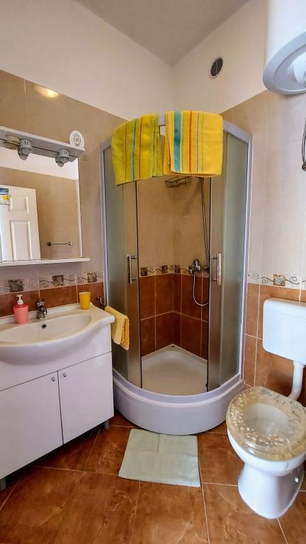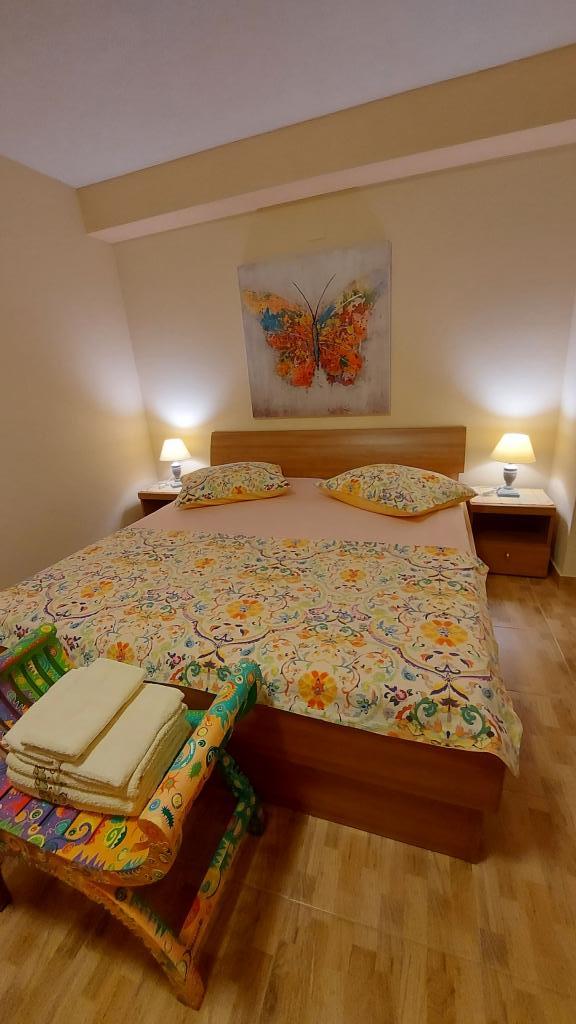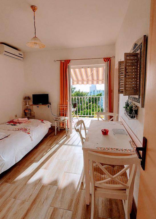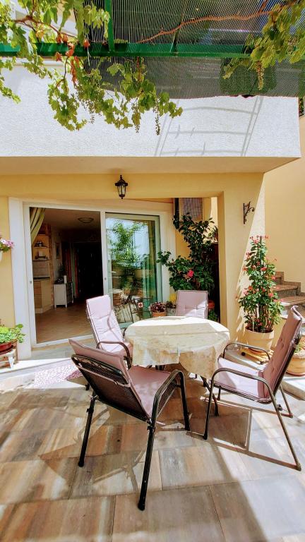 Lakossági adót az az ár tartalmazza.Olyan szállást kerestünk, ami alkalmas lenne egy kisgyermekes család számára...megfelelően felszerelt konyha (ha valami hiányzott, a főbérlőnő mindent hozott nekünk), elég nagy szoba 4 főnek és egy gyönyörű terasz kilátással a tengerre. Mindez a kertben termesztett növények árnyékában. Este kigyulladtak a fények, amit a gyerekek különösen értékeltek, éjszakai nyugalom. Kis állatrajongóinknak a házimacskák és a főbérlő garázsába való bekukkantás is tetszett. A szúnyogok nem zavartak minket, és Nensi asszony folyamatosan kényeztetett minket, és megkérdezte, hogy minden rendben van-e. Számomra ez egy gyönyörű nyaralás gyerekekkel. A sétány egy rövid sétára található, mindenhol lépcsők vezetnek a sétányra és a strandra. Üzletek is egy rövid sétára vannak. A szállás előtti kommunikáció tökéletes volt, és a helyszínen is. Az egyetlen dolog, ami elrontja, az a ház előtti út, de a szállás sokkal magasabban van, pedig a földszinten voltunk. Még azt sem lehetett hallani éjszaka. Szóval köszönet Nensinek