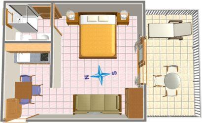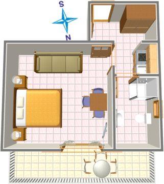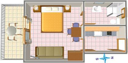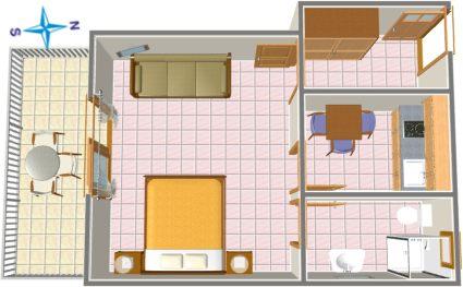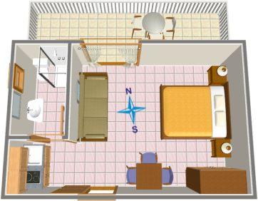Apartman két fő részére plusz két pótággyal (22 m2)
