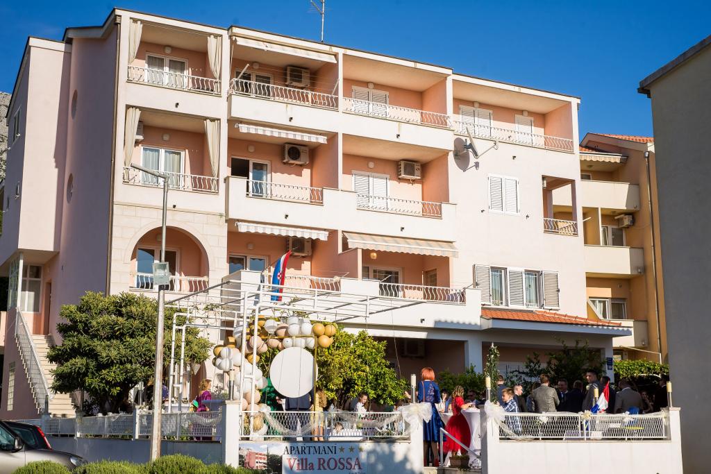Villa Rossa található központjában Tucepi, 100 m-re a strandtól. Minden apartman modern és funkcionálisan berendezett és tengerre néző erkéllyel. Felszerelése összes apartman légkondicionált, vezeték nélküli internet, műholdas / TV, teljesen felszerelt konyha, wc, zuhanyzó vagy wc, fürdőkád. Az ár tartalmazza az idegenforgalmi adót, a villamosenergia-és vízfogyasztás, légkondicionáló használata, vezeték nélküli internet, parkoló, ágynemű, törölköző. Parkolás az udvarban a villa. A környéken a létesítmény 100 és 200 m a következők: orvos, gyógyszertár, posta, ATM, pénzváltó, üzletek, pékség, étterem, kávézó, pizzéria, hajóbérlés, hajó dokkok kirándulásokra, játszótér és egy templom.