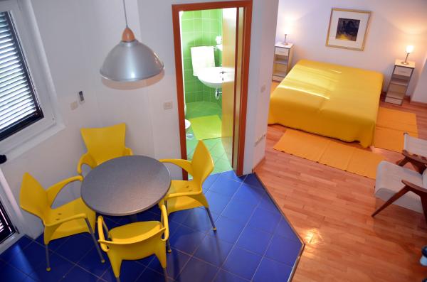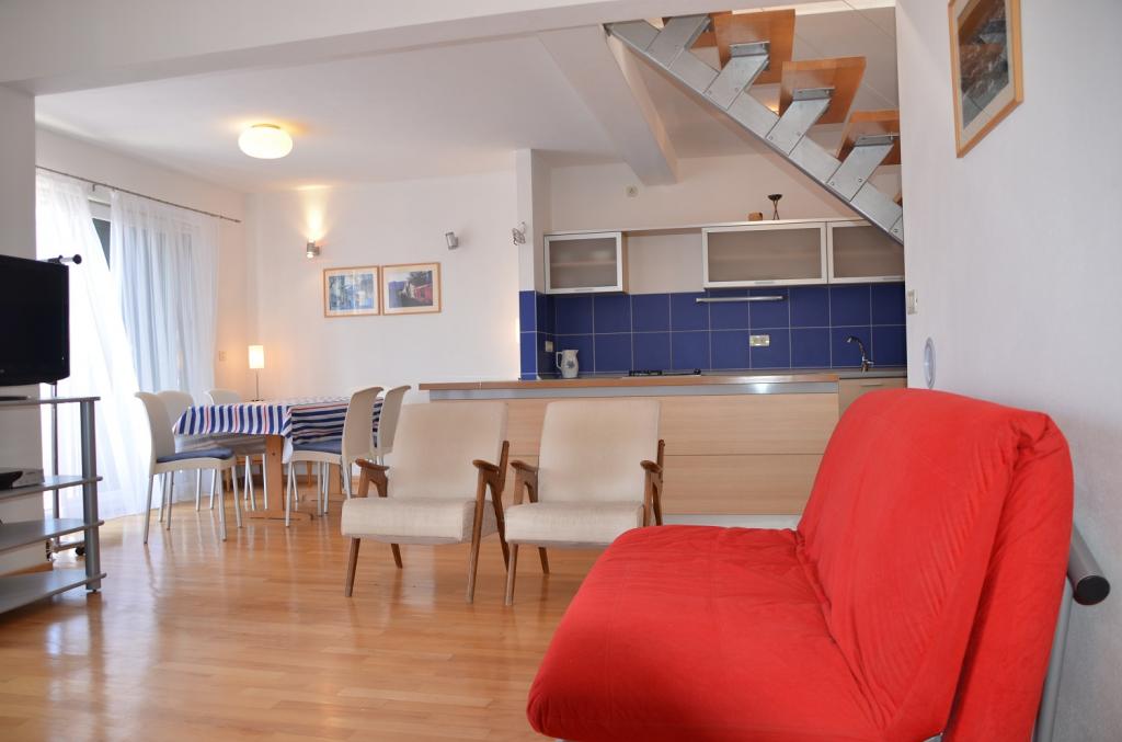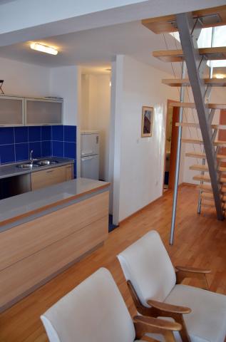 Korszerűen felszerelt apartmanok a falu központjában található épületben, csendes környéken, közel a helyi kikötőhöz, vízparthoz, strandhoz, a Villa Marija szállodához és a Hotel Laurentumhoz. A strand kb 100-150 m-re, vízpart, part, kikötő kb 100 m-re található az objektumtól, az objektum közelében játszótér található. Az épület közelében Konzum és Sudenac üzletek találhatók (kb. 100-150 m-re).