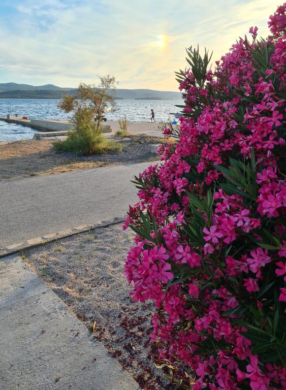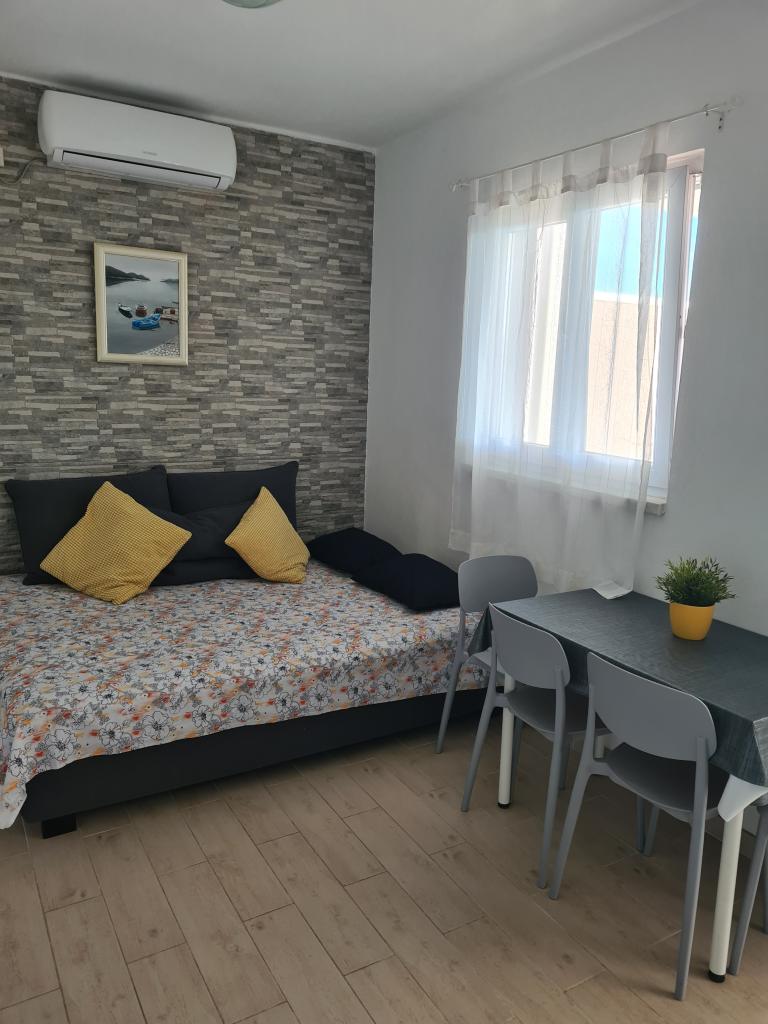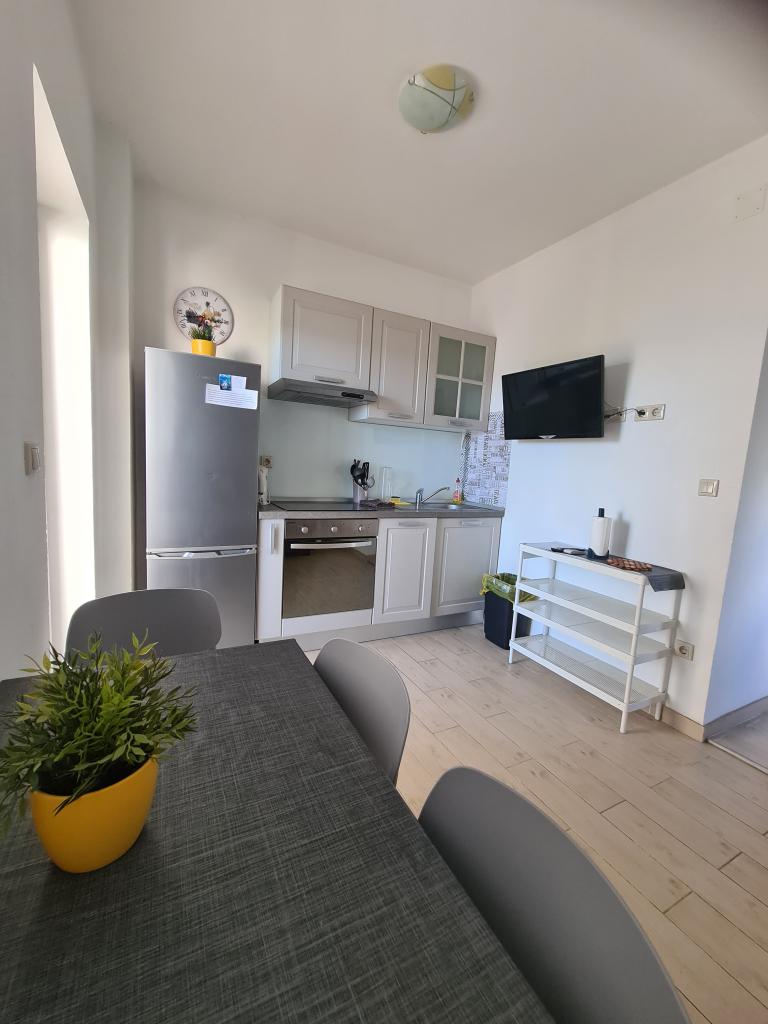 Apartman, első sorban a tenger felé, a ház első emeletén. Külön bejárat. Tengerre néző terasz. Alkalmas gyermekes családok és idősek számára. Öt perc sétára a városközponttól.
