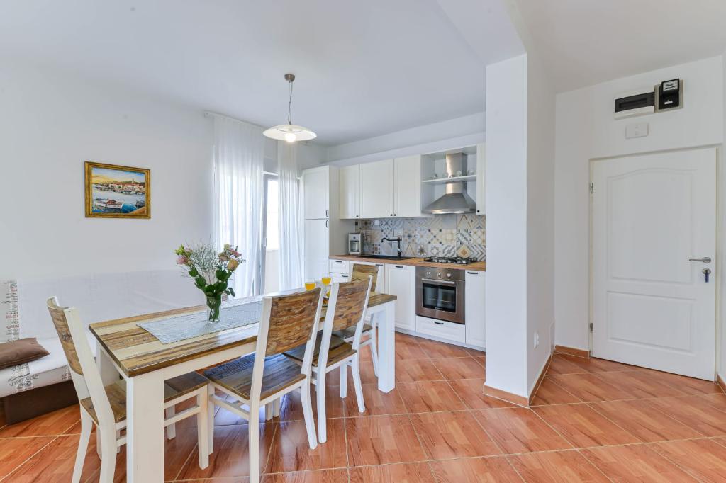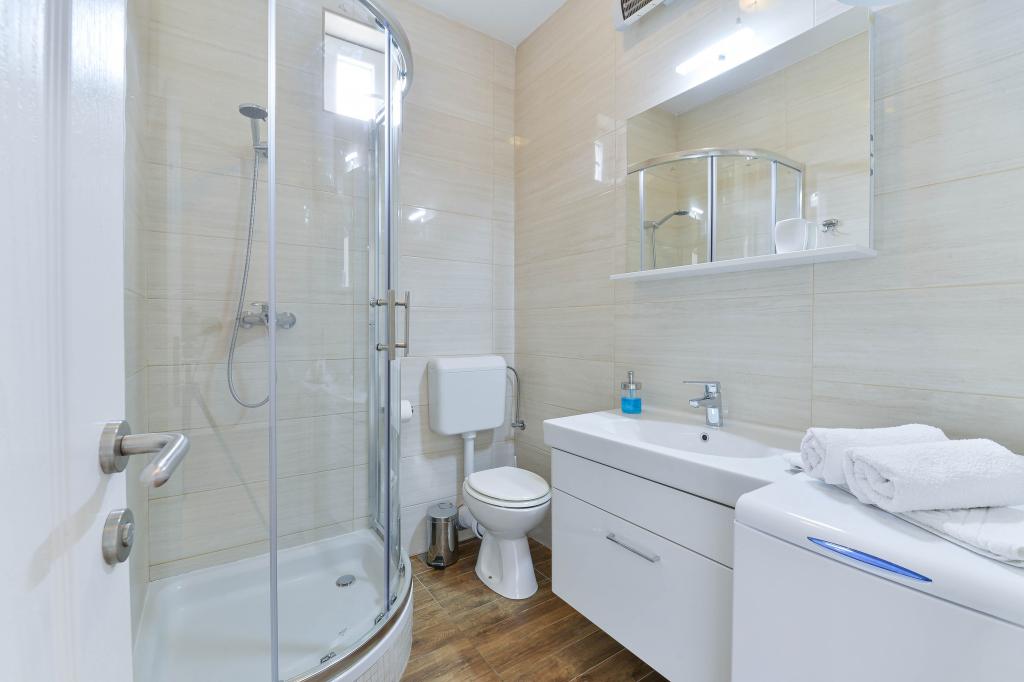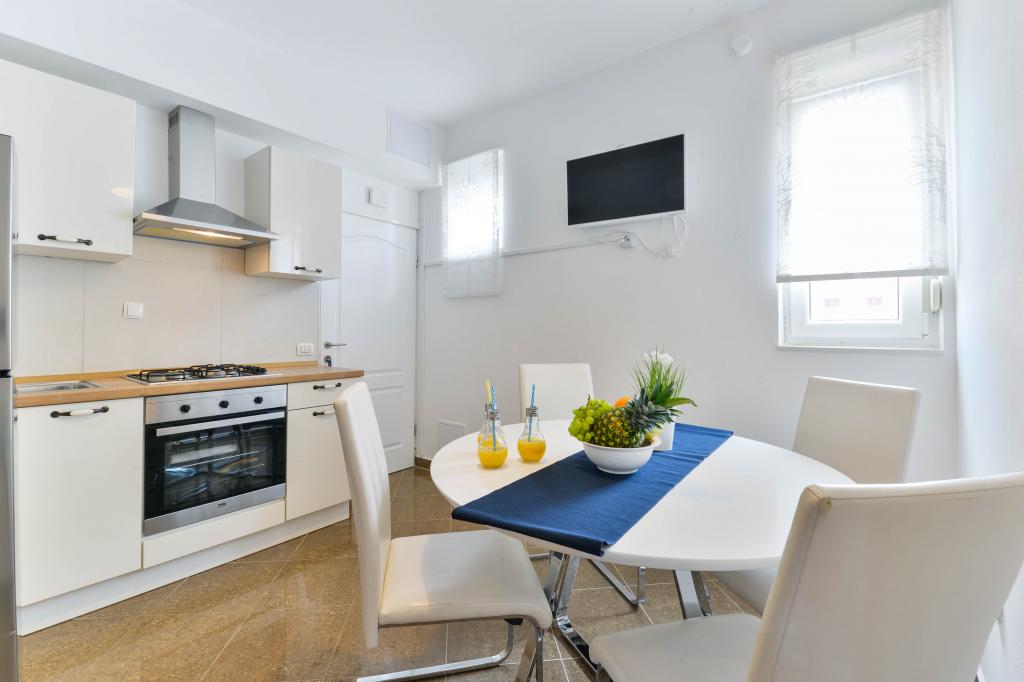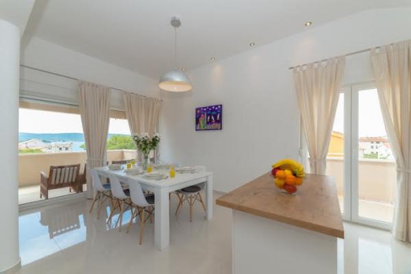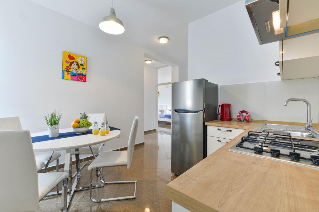 Három új, modern berendezésű apartmanok maximum 6 fő. A lakások két vagy három hálószoba, zuhanyzós fürdőszoba, teljesen felszerelt konyha, étkező, teraszok, ahonnan A1 apartman kilátással a tengerre. Minden apartman fel van szerelve mosógéppel, mosogatógéppel (két apartman: A1, A3), műholdas TV-vel, ingyenes Wi-FIEM és parkoló közvetlenül a tárgy maga. Intrade apartmanok 200m-re a városközponttól.