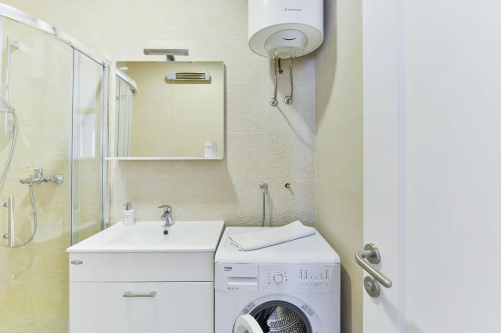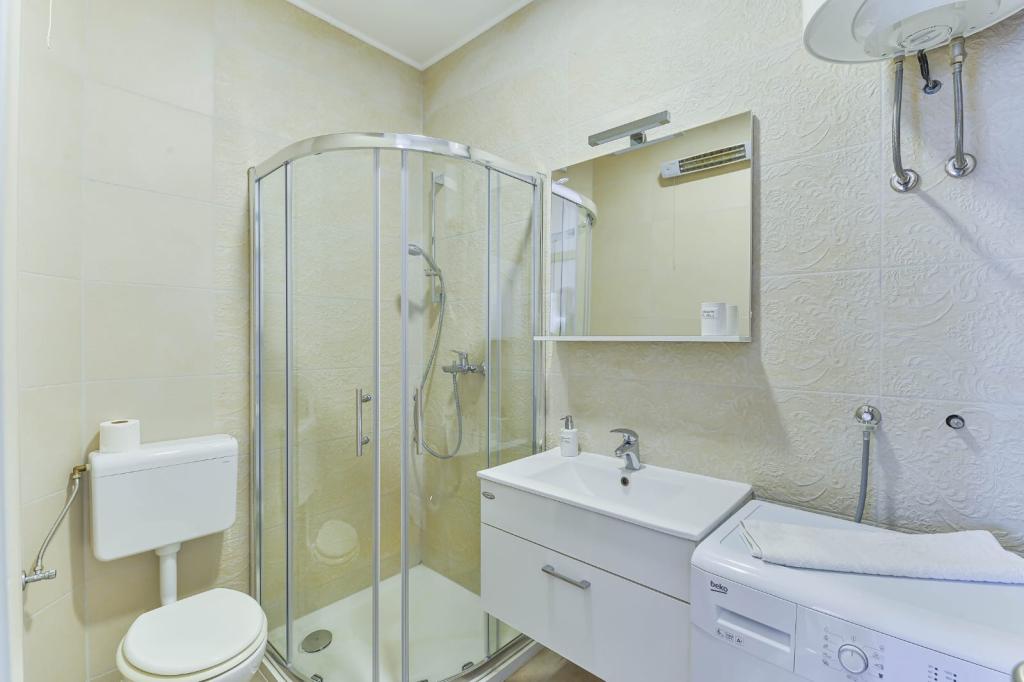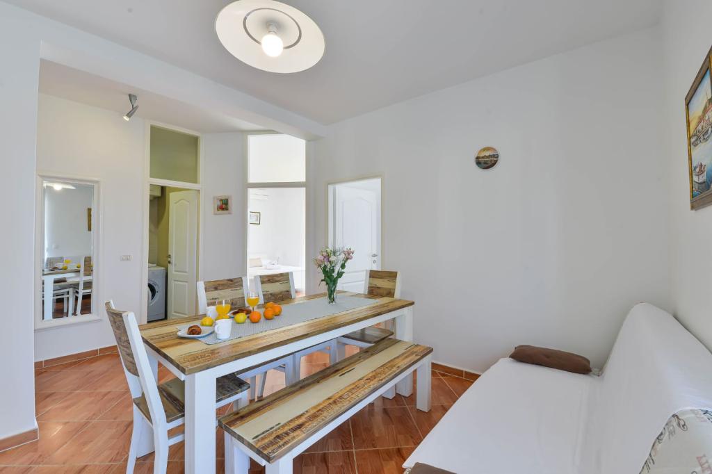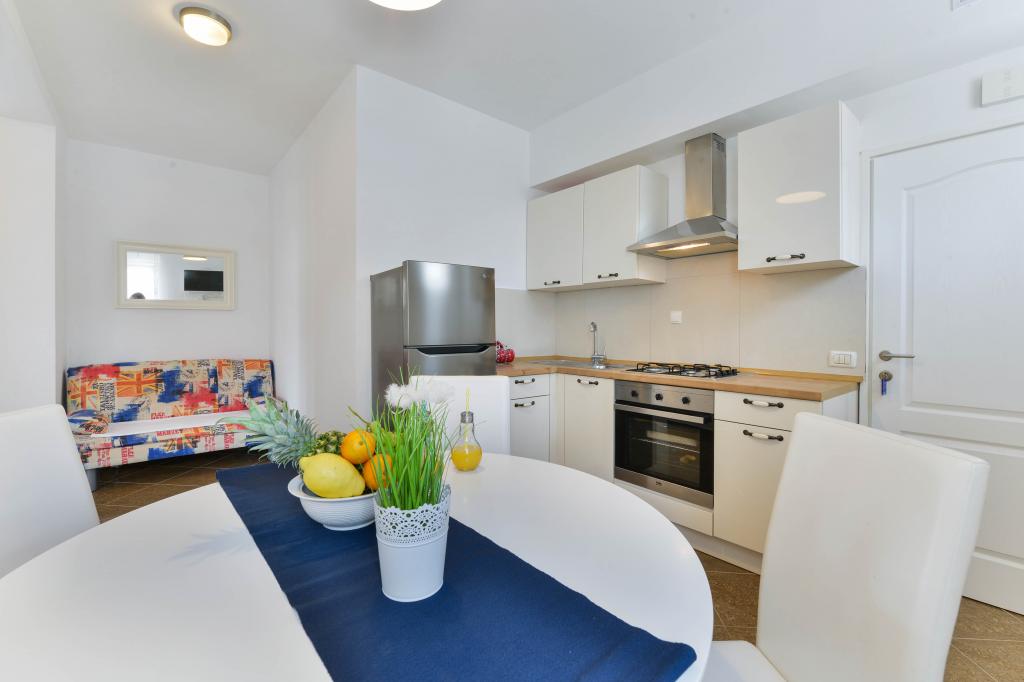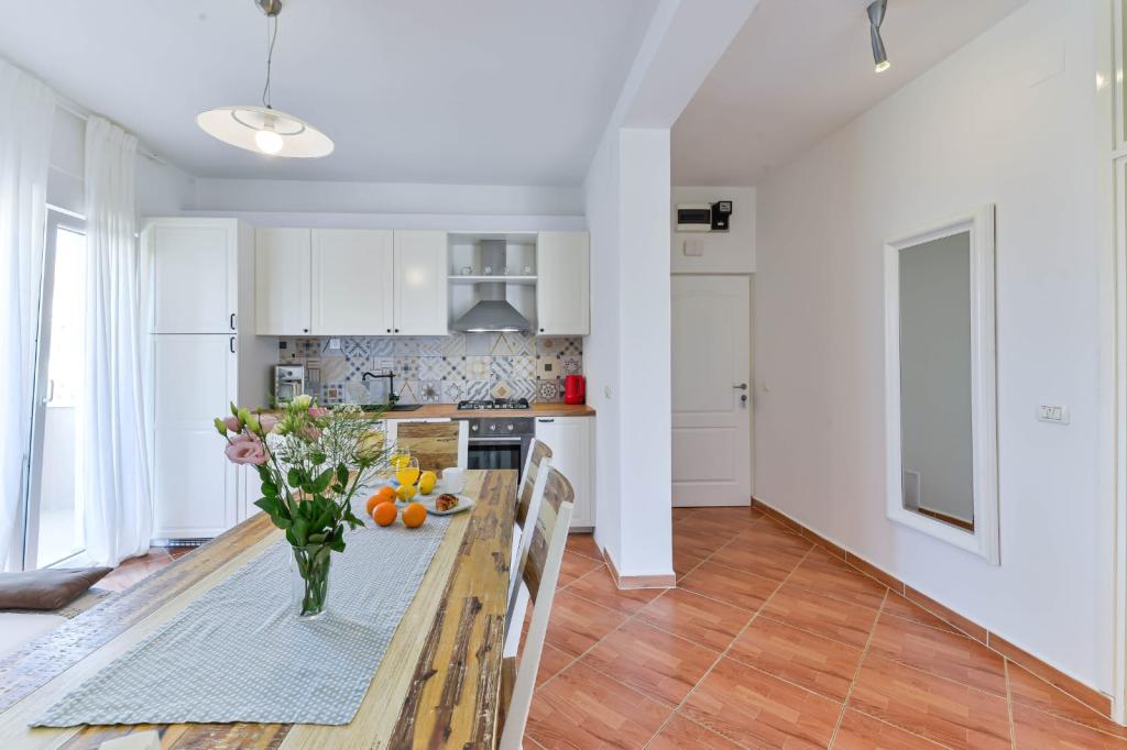 Három új, modern berendezésű apartmanok maximum 6 fő. A lakások két vagy három hálószoba, zuhanyzós fürdőszoba, teljesen felszerelt konyha, étkező, teraszok, ahonnan A1 apartman kilátással a tengerre. Minden apartman fel van szerelve mosógéppel, mosogatógéppel (két apartman: A1, A3), műholdas TV-vel, ingyenes Wi-FIEM és parkoló közvetlenül a tárgy maga. Intrade apartmanok 200m-re a városközponttól.