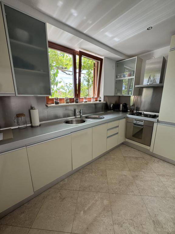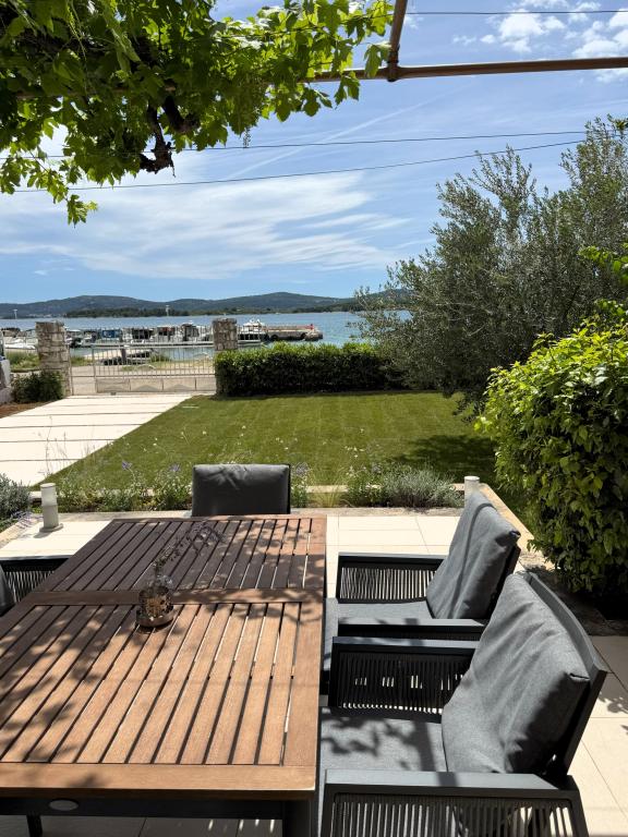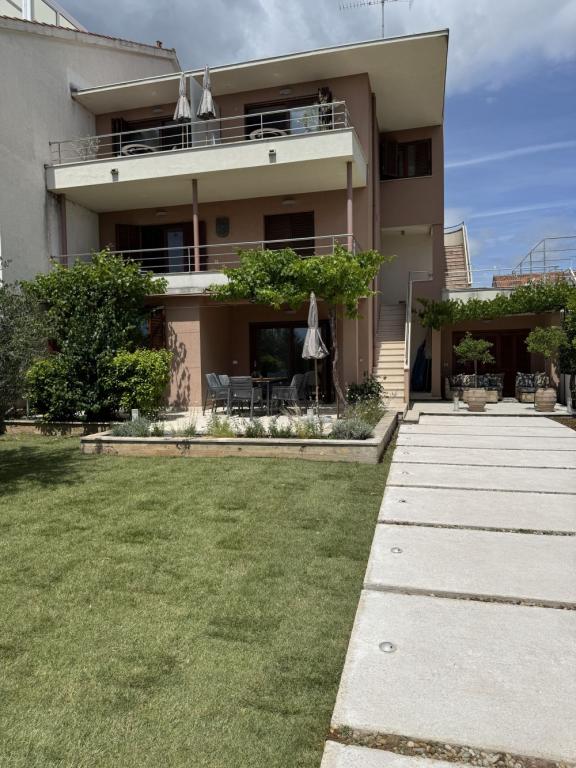 A teljesen és modernül felszerelt apartmanok a város csendes részén találhatók, az első sorban a tengertől. Az apartmanokhoz tengerre néző erkély vagy terasz, saját parkoló és kültéri terület tartozik. A strand, üzletek, éttermek, kávézók, pékség és egyéb létesítmények maximum 10 perc sétára találhatók, így minden, amire egy kellemes tartózkodáshoz szüksége van, gyalogosan is elérhető. A létesítmény különleges előnye a lakás előtt található privát csónakkikötő, amely akár 7 méter hosszú hajók számára is alkalmas. A csónak egy bójához és egy mólóhoz van kötve, ami biztonságos és egyszerű használatot tesz lehetővé. A szálláshely különösen alkalmas családok számára, akik nyugodt tengerparti nyaralásra vágynak, miközben minden szolgáltatás a közelben van autó használata nélkül.