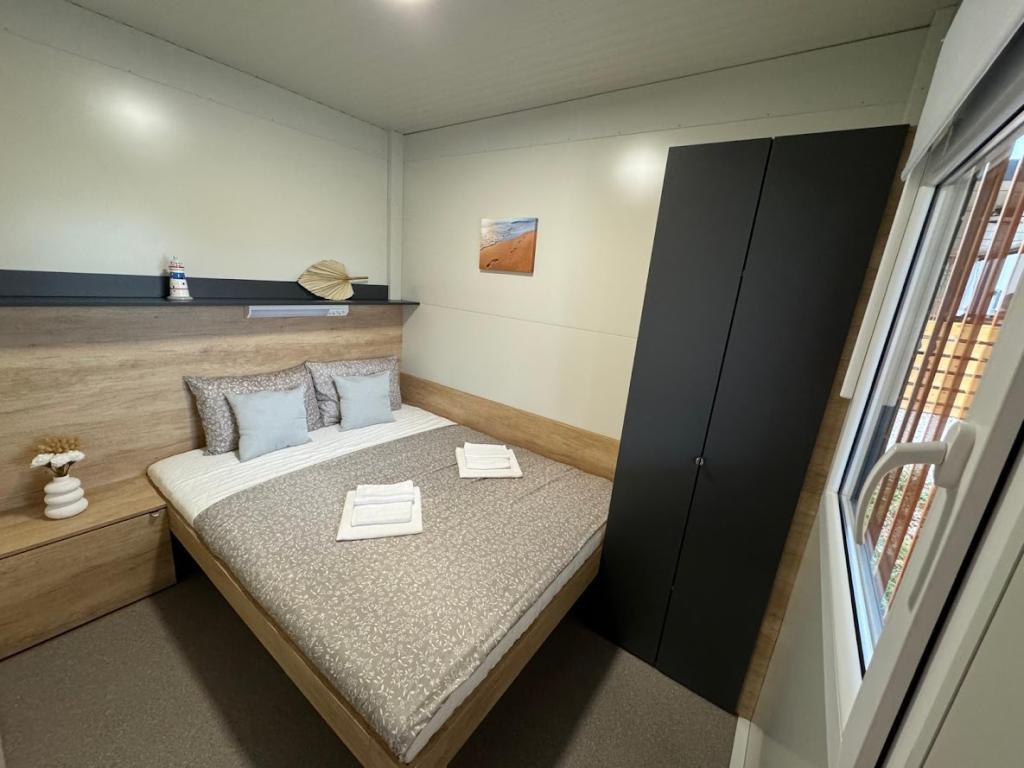 Marea mobilházainkat úgy terveztük, hogy gondtalan, kényelmes és pihentető pillanatokkal teli nyaralást biztosítsanak. Minden ház gondosan berendezett és teljesen felszerelt, kellemes tartózkodást biztosítva családok vagy párok számára, akik a magánéletre, a nyugalomra és egy modern, tengerparti otthon minden kényelmére vágynak. Egy kis, bekerített családi kempingben találhatók, mindössze 30 méterre a strandtól, Turanj csendes városában, zöldövezetben és mediterrán hangulatban. Mindkét ház felszereltsége és felszereltsége: Két hálószoba franciaággyal Teljesen felszerelt konyha (indukciós főzőlap, mosogatógép, nagy hűtőszekrény) Nappali: kanapéágy, okostévé, Wi-Fi (Starlink), légkondicionáló Fürdőszoba: zuhanyzó, törölközők, hajszárító Tágas terasz bútorokkal és nyugágyakkal Biztonságos parkolás (Marea 1 - 3. számú szállás | Marea 2 - 5. számú szállás) Üdvözlő ajándék A házak légkondicionáltak és egész évben elérhetőek, így ideális választást jelentenek nyári vakációhoz, de egy csendes téli kiruccanáshoz is a tengerparton.