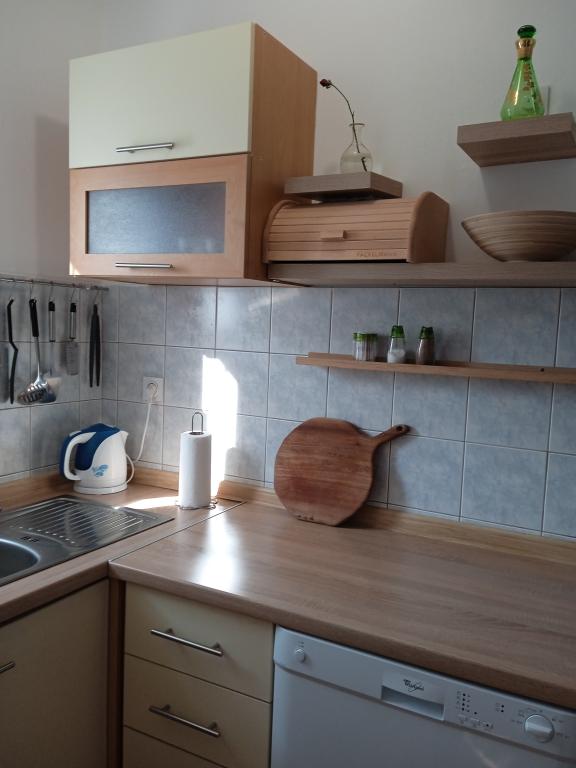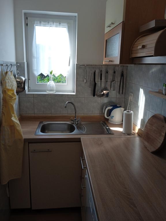 Az apartman található, az emeleten, a ház. Két hálószoba dupla ággyal. Minden szobához erkély tartozik. Szintén a lakás nappali, konyha és egy erkély. A földszinten található nyári konyha és terasz, fekete konyha, kandalló, amely együtt alkalmazzák a házigazdák. Az udvaron van egy parkoló. A lakáshoz tartozik egy külön bejárattal. Ingyenes wi-fi.