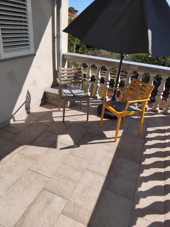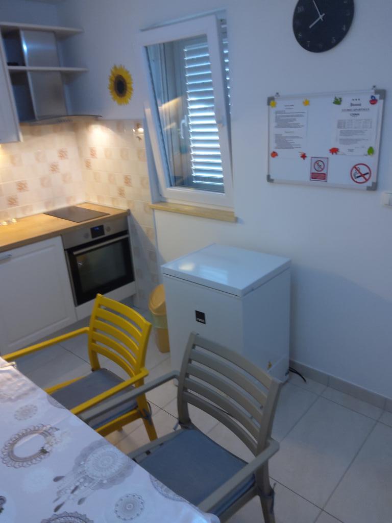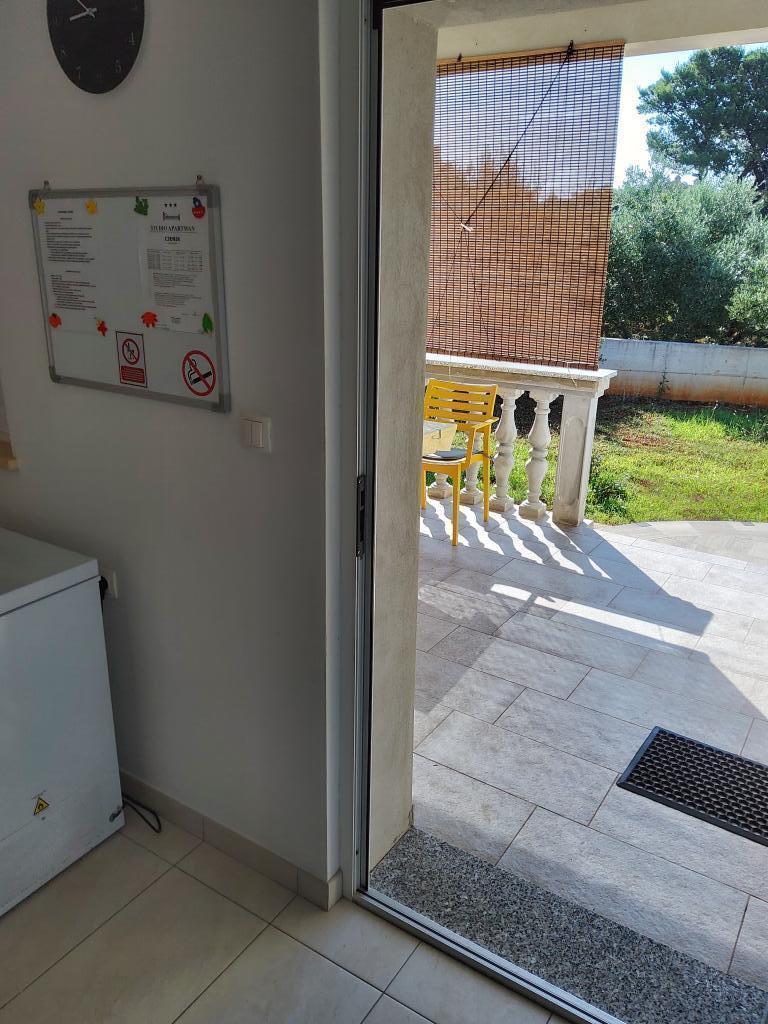 Ideális szállás két felnőtt számára. A Laguna apartman egy családi ház földszintjén található, nagy kerttel. Az apartman területe 35 m2, a terasz pedig 15 m2. Északkeleti fekvésű, a nap nagy részében árnyékban van. Az épület egy apartmanból és egy a házigazda számára fenntartott apartmanból áll. Az apartman a földszinten található, teraszra, kertre nyílik, és tengerre néző kilátás nyílik. Az apartman új, kényelmes és praktikus szállást biztosít a forró nyári napokon. Mindennel felszerelt, amire egy kellemes tartózkodáshoz szükség van. A létesítmény térkövezett parkolást is biztosít. A strandon kávézó és strandröplabda-pálya található. A strand az apartman közelében található. Üzletek, piac és minden más a központban található. Autóval (2 perc) megközelíthető a központ, de kerékpárral még jobb.
