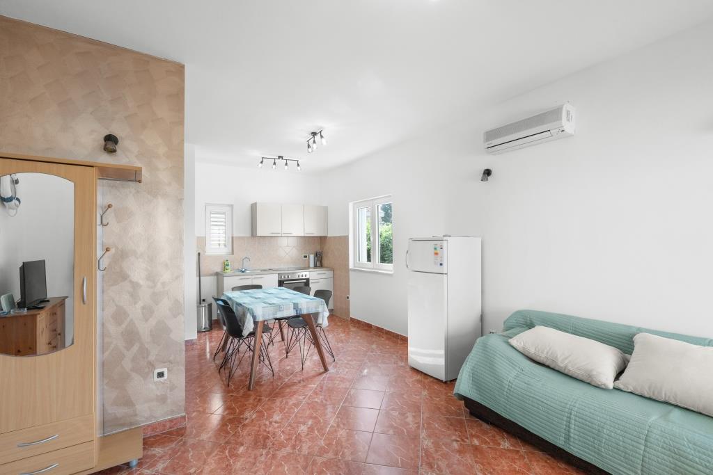Az apartmanok közvetlenül a tenger mellett találhatók, nyugodt és barátságos vidéki környezetben. Minden apartmanhoz nagy terasz tartozik, kilátással a tengerre. A szobákat egy parkosított mediterrán kert veszi körül, amely alkalmas a gyermekek számára a játékra. A kertben napozóágyak és közös grillező áll rendelkezésre. Minden apartmanhoz 2 fürdőszoba tartozik. A közelben, 5 perces sétára található a központ, ahol a helyi gazdaságok termékeit kínáló piac, valamint üzletek és éttermek találhatók. A sürgősségi orvosi segítség éjjel-nappal elérhető. A közvetlenül az apartman előtti strand kavicsos, és a közelben több strand is található, ahol homokos strand is található. Érkezés autóval: az autópálya közvetlenül Gaženica kompkikötőjébe vezet. Ezt követően felszáll a kompra Prekóba. Nyáron gyakoriak a vonalak, legalább óránként járnak. A Preko kompkikötőből a sziget főútján éri el Ugljan városát, amely 10 km-re található. Érkezés repülővel: Zadar repülőtérről busszal vagy taxival 15 perc alatt. Közvetlenül megérkezik Gaženica kompkikötőjébe, ahol felszáll a Prekóba tartó kompra.
