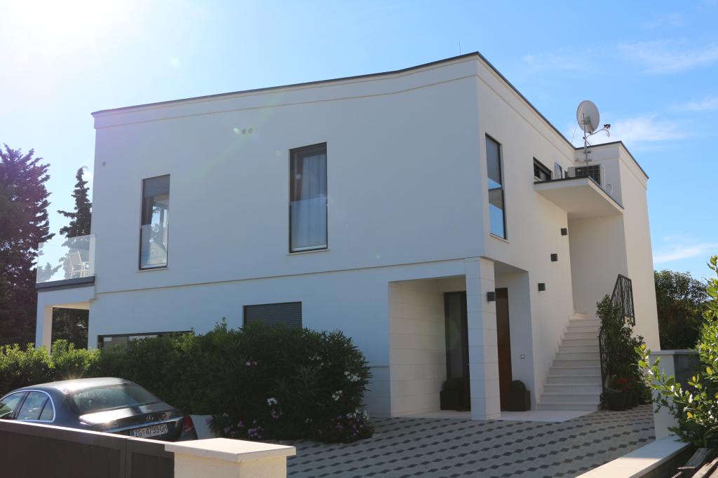 Teljesen új és modern apartman, első sorban a tenger felé, 50m2-es, tágas erkéllyel napozásra és étkezésre. Biztonságos parkoló az épület udvarán belül, elektromos mozgatható kerítéssel. Az apartmanok 55"-os internetes TV-vel vannak kialakítva a nappaliban és 43"-es a hálószobában, streaming szolgáltatásokkal (például Netflix). A konyhák hűtővel, fagyasztóval, indukciós főzőlappal és sütővel, valamint mosogatógéppel felszereltek. Hajszárító, törölköző, ágynemű, edények, edények, wc papír benne van. Közel a központhoz, 3 élelmiszerbolttal és 4 étteremmel a város központjában. A közelben két pizzéria is található. A közelben két tengerparti bár található, a "Ritam" és a "Bichikleta". Szezonban a "Ritam" bárban érdekes szórakoztató programokat kínálnak zenei előadók.