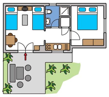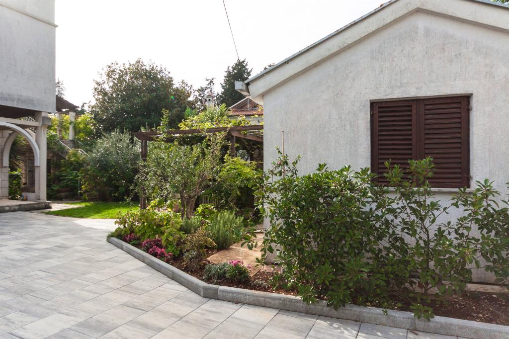 Gyönyörű apartmanjaink külön bejárattal és megfelelő parkolóval rendelkeznek. A ház első emeletén két apartman, az udvaron pedig egy bungaló található. Egy szépen gondozott kert áll minden vendég rendelkezésére. A tulajdonosok a házban laknak, és minden vendég érdeklődésére készséggel állunk rendelkezésére. Kérésre a vendégek grillezőt, mosógépet és még sok mást is kaphatnak. A ház egy turista félszigeten található, és három oldalról strand és különféle létesítmények veszik körül. Játszóterek, úszómedencék, sportpályák, kávézók, éttermek és még sok más.