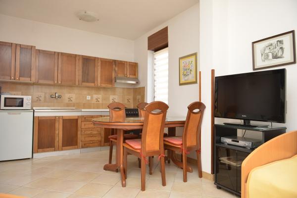 Az apartmanok egy családi ház földszintjén és első emeletén találhatók Puntában, Umagban, a város csendes részén, a STELA MARIS üdülőhely közelében, ahol a híres Umag Croatia Open teniszbajnokság, gyönyörű strandok és sportpályák, minőségi éttermek. . Az apartmanok kényelmesek és korszerűen felszereltek. Az apartmanokban 1 hálószoba franciaággyal, ágynemű (heti csere), fürdőszoba zuhanyzóval, WC, mosógép, hajszárító, törölköző 2 személyenként (hetente cserélhető). Nappali konyhával felszerelt elektromos főzőlappal, sütővel, mikrohullámú sütővel, kávéfőzővel, elektromos vízforralóval, étkezőasztallal 4 székkel. A nappaliban további 2 ágy, műholdas TV, ingyenes Wi-Fi, légkondicionáló található. Kérjük a vendégeket, hogy óvatosan használják a berendezést. A lakásban tilos a dohányzás, de a teraszon megengedett. Kedves vendégeink, pozitív benyomásaikat kérjük, írják be hirdetésünk vendégkönyvébe. Köszönöm.