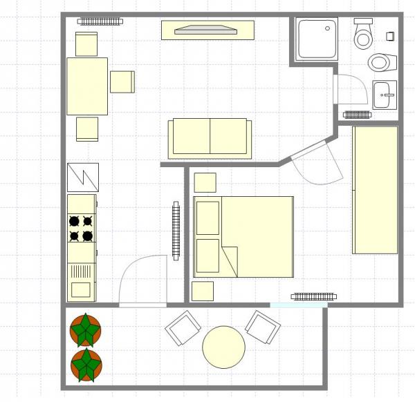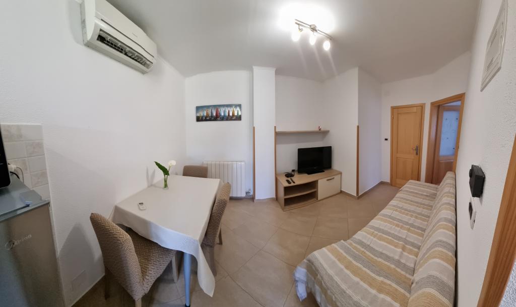 Kicsi, de nagyon hangulatos apartman, mindennel felszerelt, ideális 2 fő számára, akiknek lehetősége van mosni a dolgokat a jelenlegi mosógéppel. Privát strand 100 méterre, nagyon szép étterem a sarkon, és szerintem még a leghidegebb hónapokban is lehet foglalni, mert fűtött.