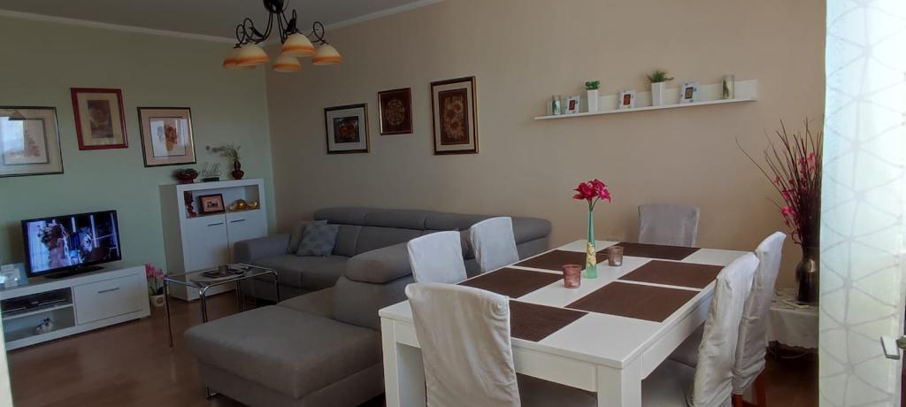 Üdvözöljük a "Florem" apartmanban, amely a ValMod központ közelében található, az R. Boškovića utca 20. szám alatt, egy liftes épületben. Légkondicionált 60 m2-es apartmanunk egy frissen felújított, minden szükséges géppel és edényekkel felszerelt konyhából, kamrából, tágas nappaliból, kádas és mosógépes fürdőszobából, valamint egy franciaággyal és egy emeletes hálószobából áll. ágy. A nappali sarokkanapéja ággyá is bővíthető. Az épület előtt ingyenes parkoló és zöldövezetben játszótér található. A közvetlen közelben több üzlet, bank, benzinkút, kávézó, templom... Sétálhatunk a belvárosba vagy a Dráva-parti sétányra, ahol a nyári hónapokban a medencéket is élvezhetjük. . Miután kiment, pihenjen egy TV, ingyenes Wi-Fi és néhány könyv, játék és társasjáték mellett, vagy gyönyörködjön a naplementében. Az erkélyről kilátás nyílik a régi városközpont háztetőire, de a Dráva-erdő, Ivanščica és Ravna Gora zöldjére is. Kellemes időtöltést kívánunk.