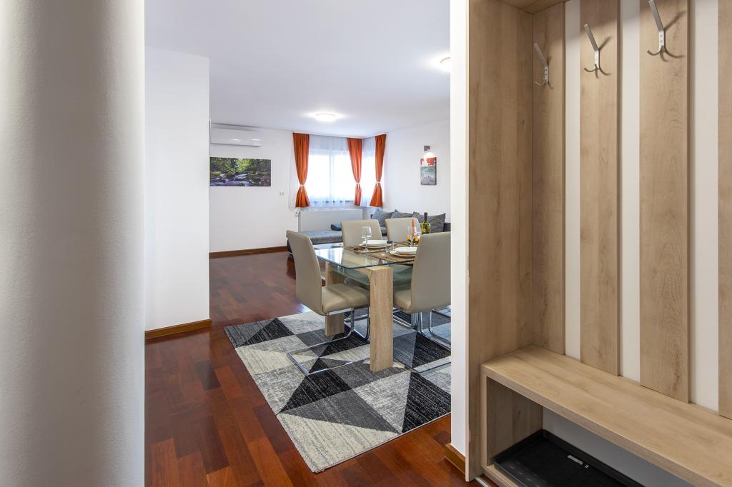 A Ratkajec Luxury Apartments felszereltsége miatt tökéletes választás családok, üzleti partnerek, sportolók vagy magánszemélyek számára. Ezek a modern apartmanok Varaždinban találhatók, körülbelül 1,7 km-re a városközponttól. Az épület mellett egy bekerített parkoló található, mely videóval megfigyelt. Az apartman légkondicionált, központi fűtéssel, mosogatógéppel és mosógéppel felszerelt, maximum 6 fő elszállásolására alkalmas. Az apartmanban két hálószoba található, az egyikben franciaágy, a másikban 2 egyszemélyes ágy + pótágy a nappaliban. Az apartman ára tartalmazza a wellness részleget hidromasszázs káddal, szaunával, nyugágyakkal és fitneszgépekkel. Egyéb szolgáltatások is rendelkezésre állnak, mint például boxzsák, darts és csocsó. Az apartman közelében üzletek, kávézók, hagyományos ételek és italok változatos gasztronómiai kínálatával rendelkező éttermek és számos kulturális látnivaló található.
