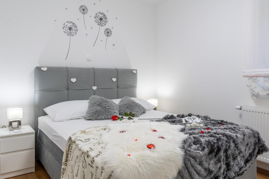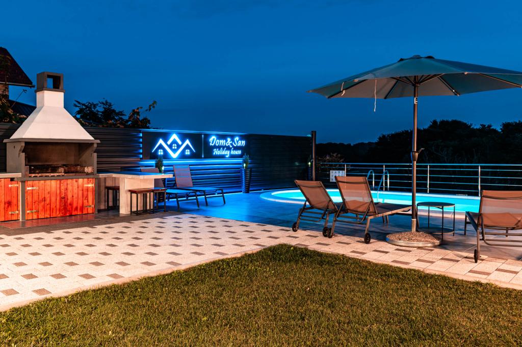 A Dom&San nyaralóház úszómedencével, Varasd barokk városához nagyon közel található, és számos tevékenységgel ideális a valóságtól való meneküléshez. Pihenjen a beltéri szaunában vagy jakuzziban, és élvezze a vakációt. Az úszómedencének köszönhetően az év legmelegebb napjaiban is kényelmesen hűtheti magát. A medence felüdülést kínál, a fedett terasz pedig a grill illatával és egy frissítő itallal csábít az árnyékban való pihenésre. Gyermekei el lesznek ragadtatva a trambulinnal, csúszdával, mászókával és tágas udvarral, így biztosan élvezni fogják a természetben való játékot a friss levegőn. A házban két hálószoba, egy fürdőszoba, tágas, légkondicionált nappali konyhával és étkezővel, valamint egy pihenőszoba található jakuzzival és szaunával. A világos és modern szobák rendkívül jól felszereltek, a lakberendezési világ legújabb szabványainak megfelelően. A belső tér nyugodt és kellemes légkört teremt, hogy nyaralása a lehető legjobb legyen.