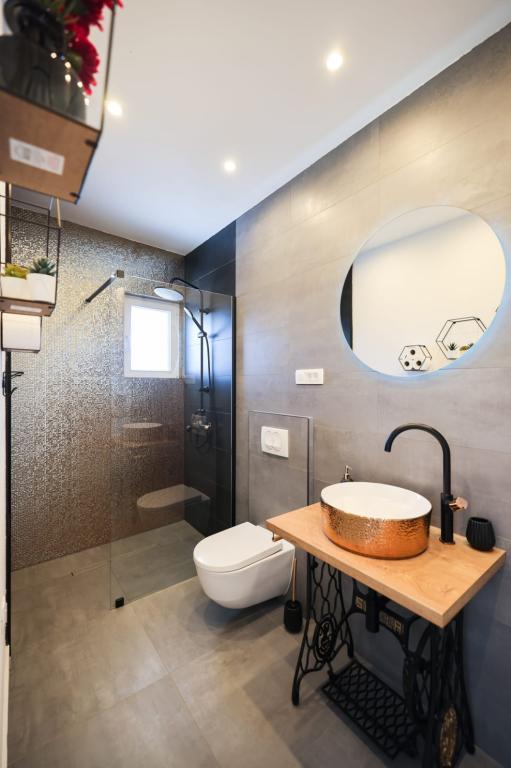 A külön bejáratú, légkondicionált apartmanban 1 nappali, 1 külön hálószoba, valamint 1 fürdőszoba található küszöb nélküli zuhanyzóval és hajszárítóval. A jól felszerelt konyhában főzőlap, hűtőszekrény, mosogatógép és konyhai eszközök állnak rendelkezésre. Az apartmanhoz grillező is tartozik. Az apartman kertre néző erkéllyel, mosógéppel és síkképernyős TV-vel rendelkezik. Az egységben 2 ágy található.