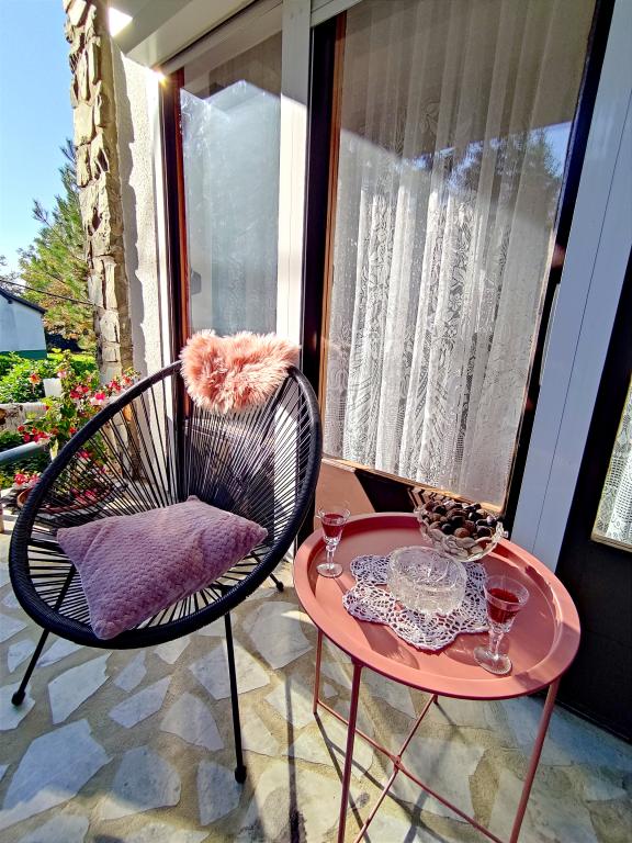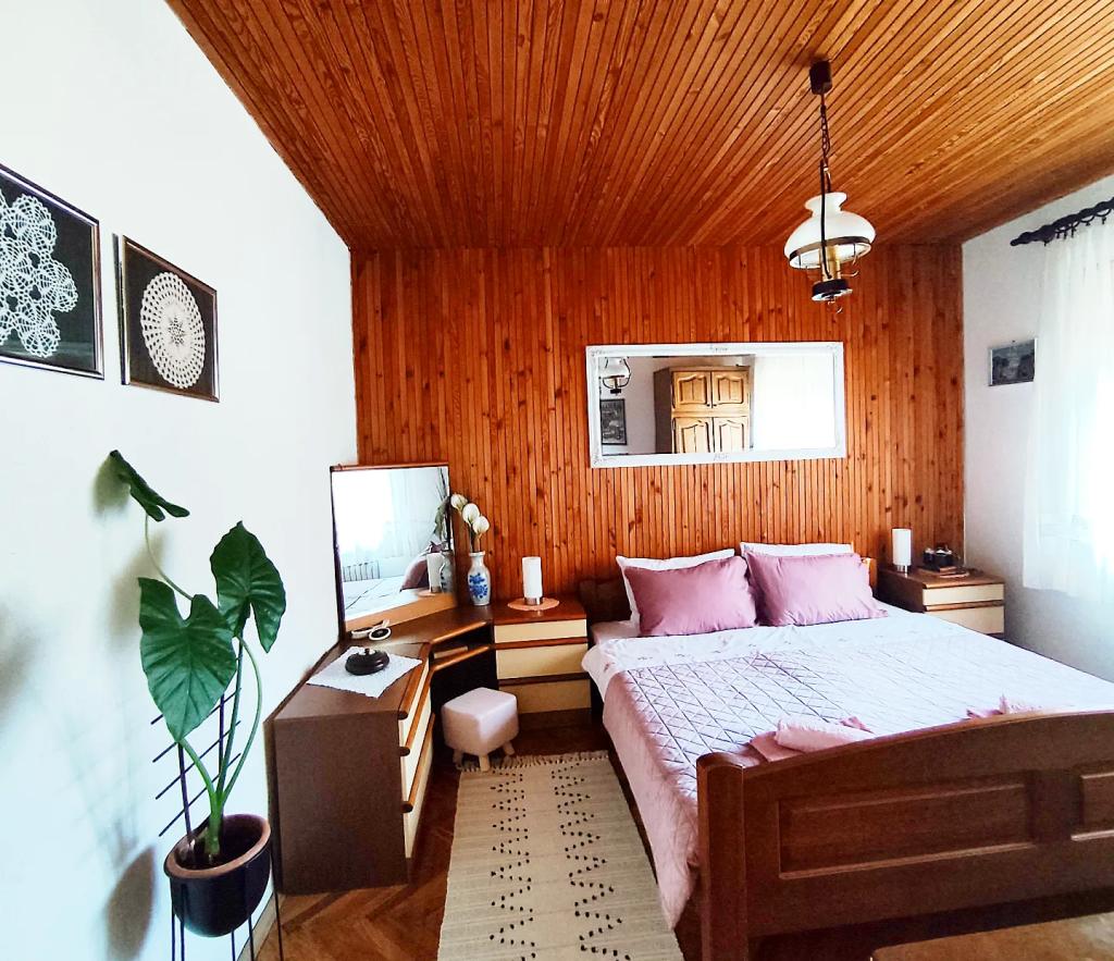 Lakás szláv stílusban berendezett, modernizált, funkcionális, fákkal és patakokkal körülvéve Velika podno Papuka faluban. A konyha az ételek elkészítéséhez és felszolgálásához szükséges eszközökkel, edényekkel felszerelt. A hálószobában található egy nagy dupla, kézzel készített tölgyfa ágy, valamint egy dupla gardrób, egy éjjeliszekrény és egy sminkasztal tükörrel. A tágas nappaliban egy bőr három- és kétszemélyes, valamint egy okostévé található, ahonnan ki lehet jutni a kerti bútorokkal ellátott teraszra. A fürdőszobában padlófűtés, zuhanyzó és mosógép található. Az udvarban lombkorona és egy nagy asztal padokkal, grillező, játszótér és trambulin áll az Ön rendelkezésére. Az épület mögött egy patak található, ahol horgászni vagy felfrissülni a forró napokon. Az apartman a natúrpark, adrenalin park, aqua park, erdő és szőlőskert közelében található. Étterem 300 m, bolt és benzinkút 1000 m-re található.